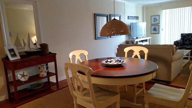 Freshly redecorated, this enchanting villa is light, airy and serene. With wood floors, the living room and dining room combine into a single welcoming space. In crisp nautical hues, the living room features comfortable seating with a 50” Samsung Smart HDTV.