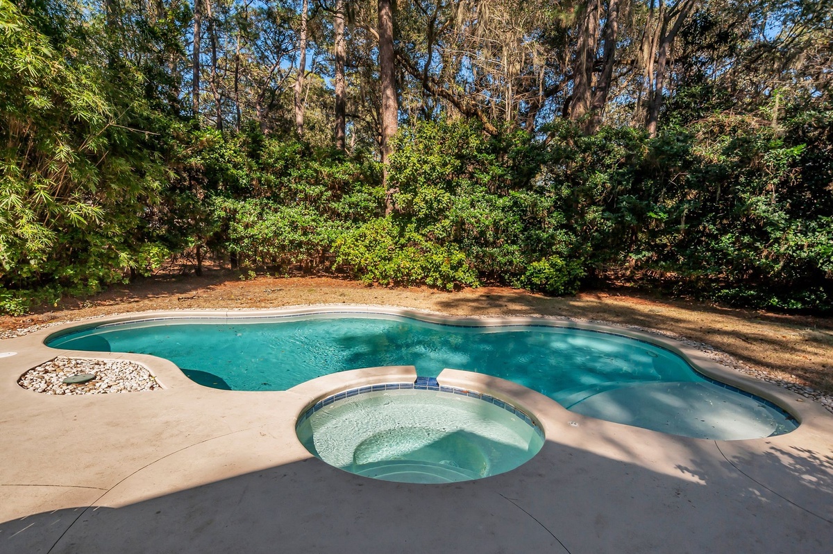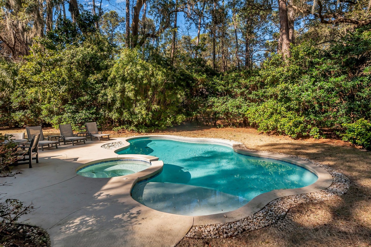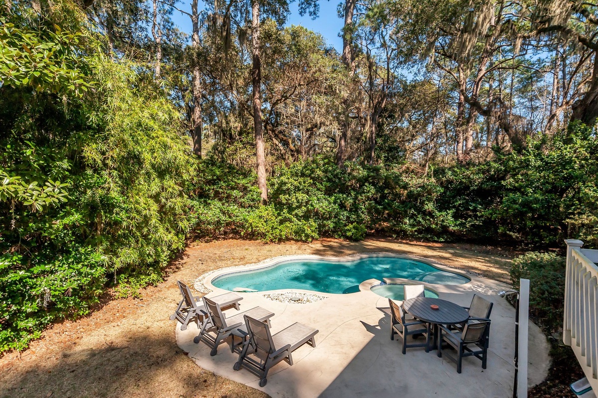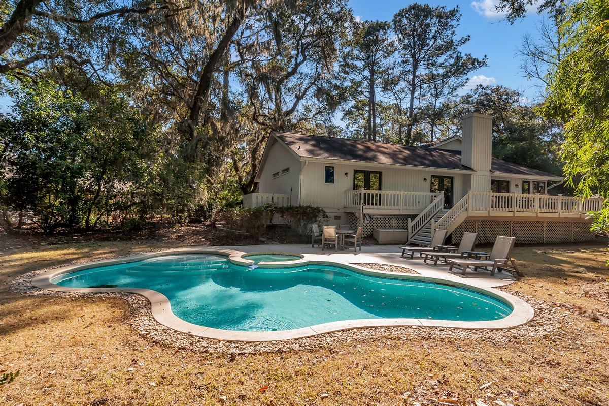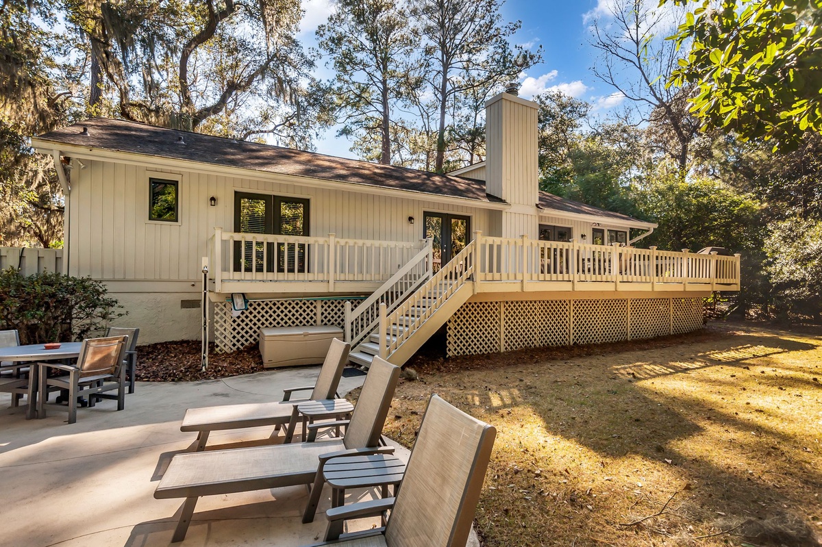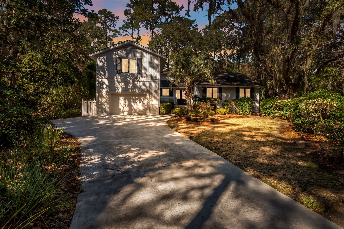 Enjoying lush, wooded privacy, this vacation getaway still puts you in the heart of it all, halfway between Lawton Stables and Harbour Town Marina, with adventure just a bike ride away.