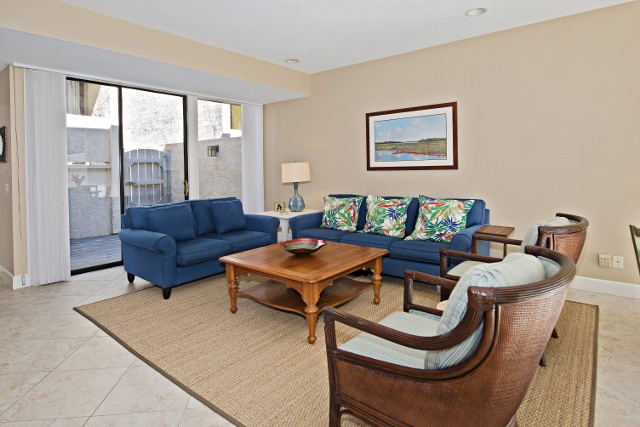 Through the gated courtyard with bistro seating, you’ll find this lovely four-bedroom premier villa, which is wonderfully located next to the Harbour Town Clubhouse and Golf Links.