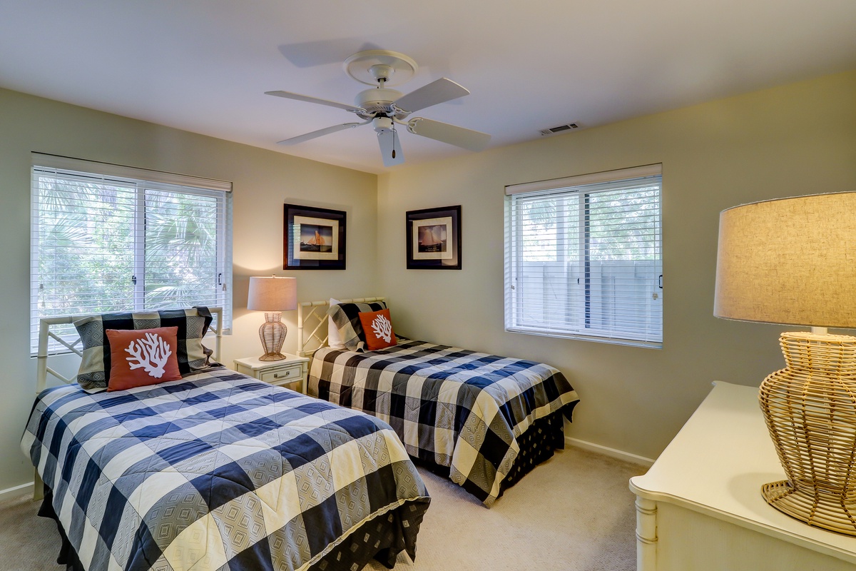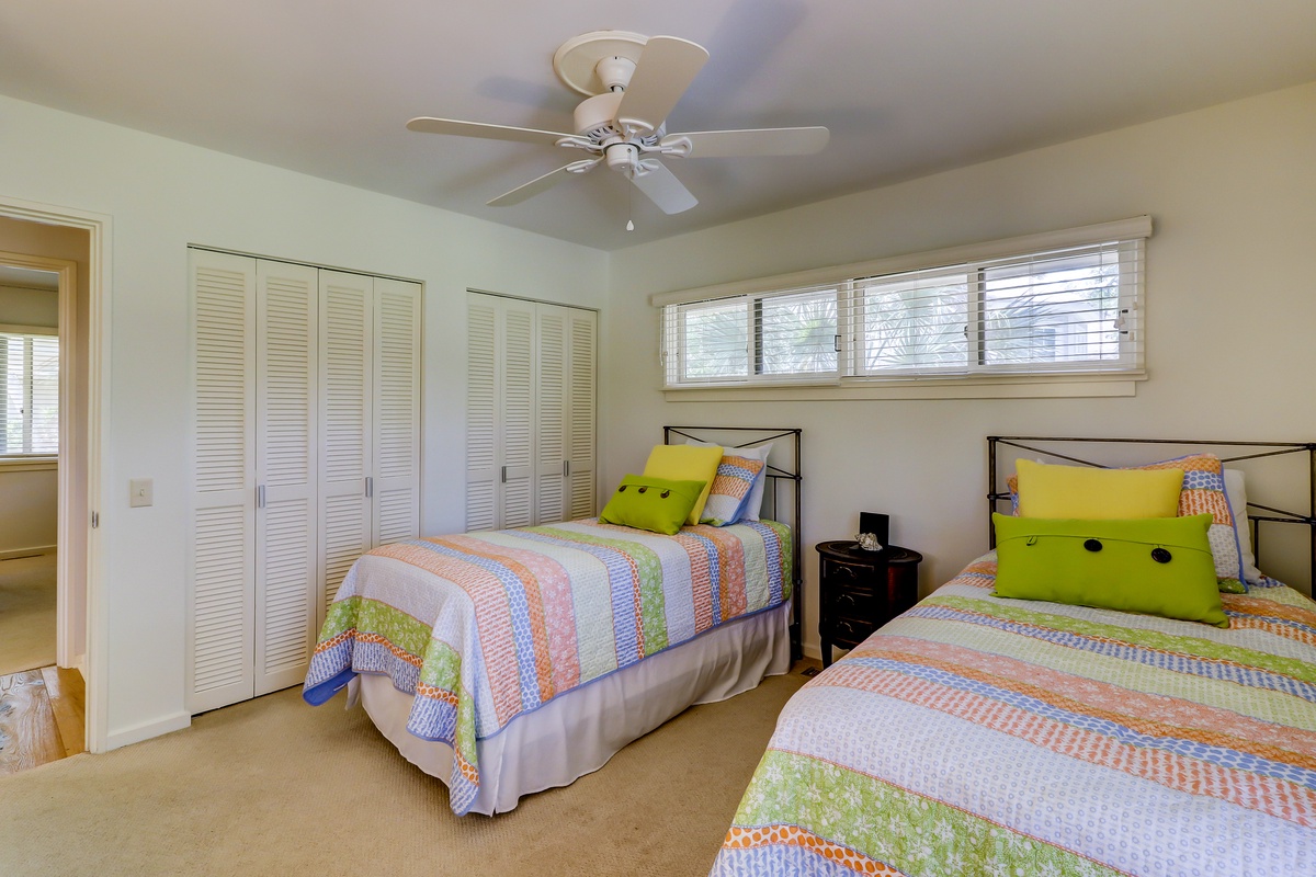 • Upstairs Guest Room: Two twin beds, access to hall bath with tub/shower