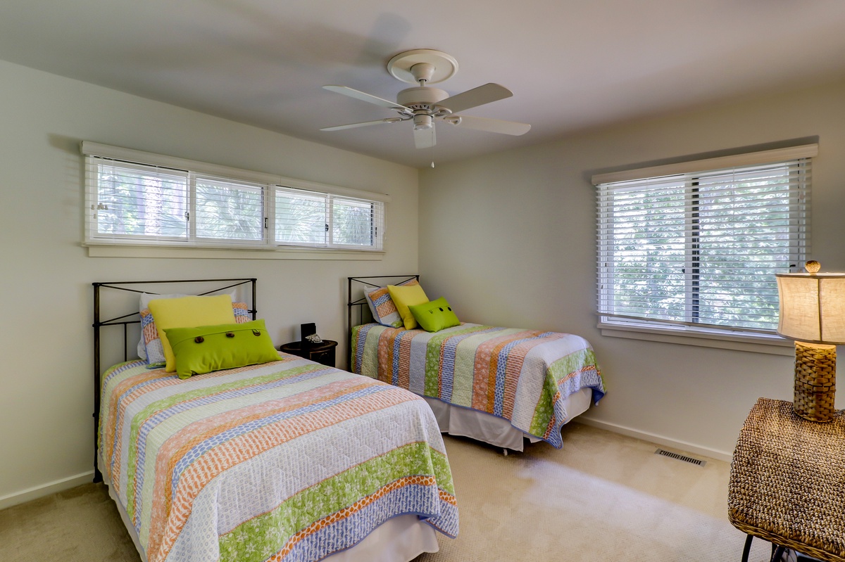 • Downstairs Guest Room: Two twin beds, shared full bath