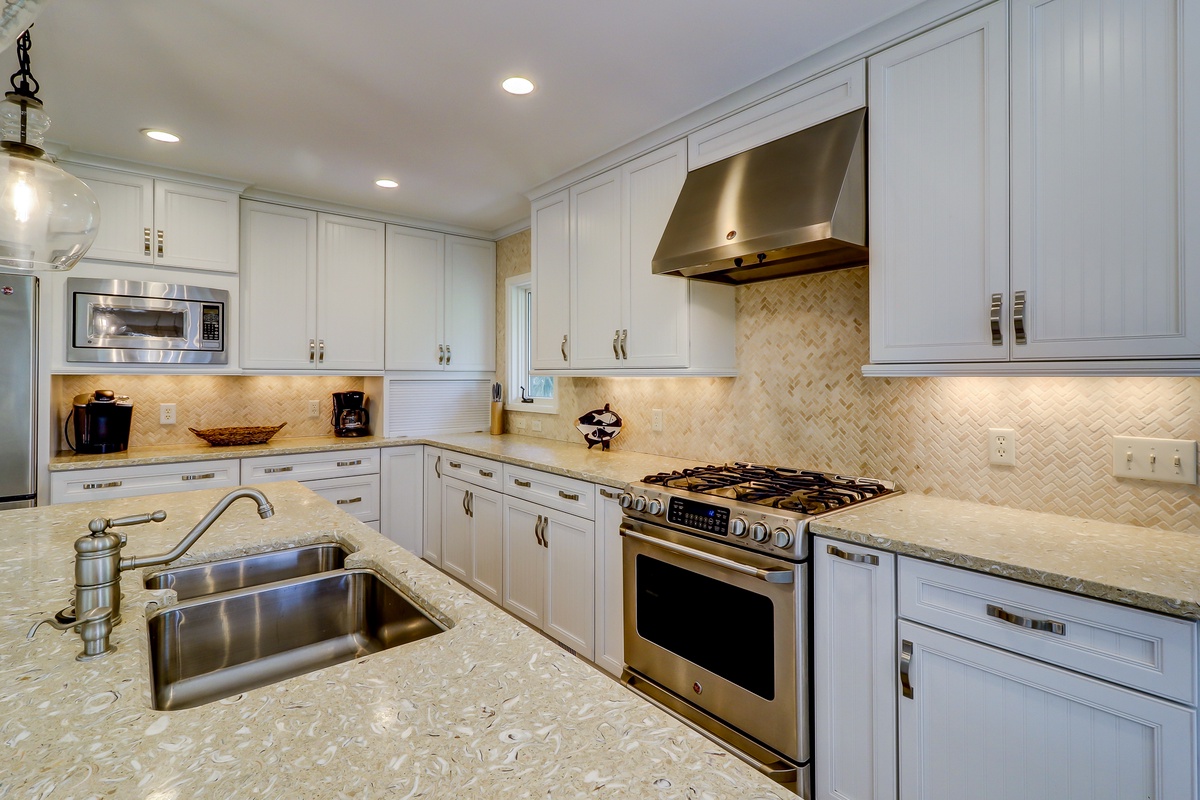 The updated kitchen is a showstopper, complete with composite seashell-inlaid countertops, a GE professional chef’s range, and high-end stainless steel appliances. Entertain with ease at the spacious center island with seating for three, or enjoy meals with a view at the dining table for six surrounded by windows. Step out onto the balcony, where patio seating for four overlooks a lush green backdrop.