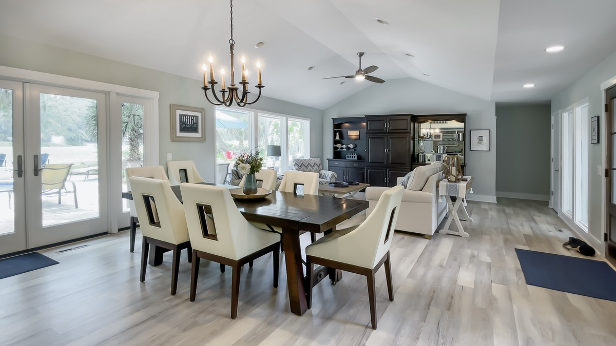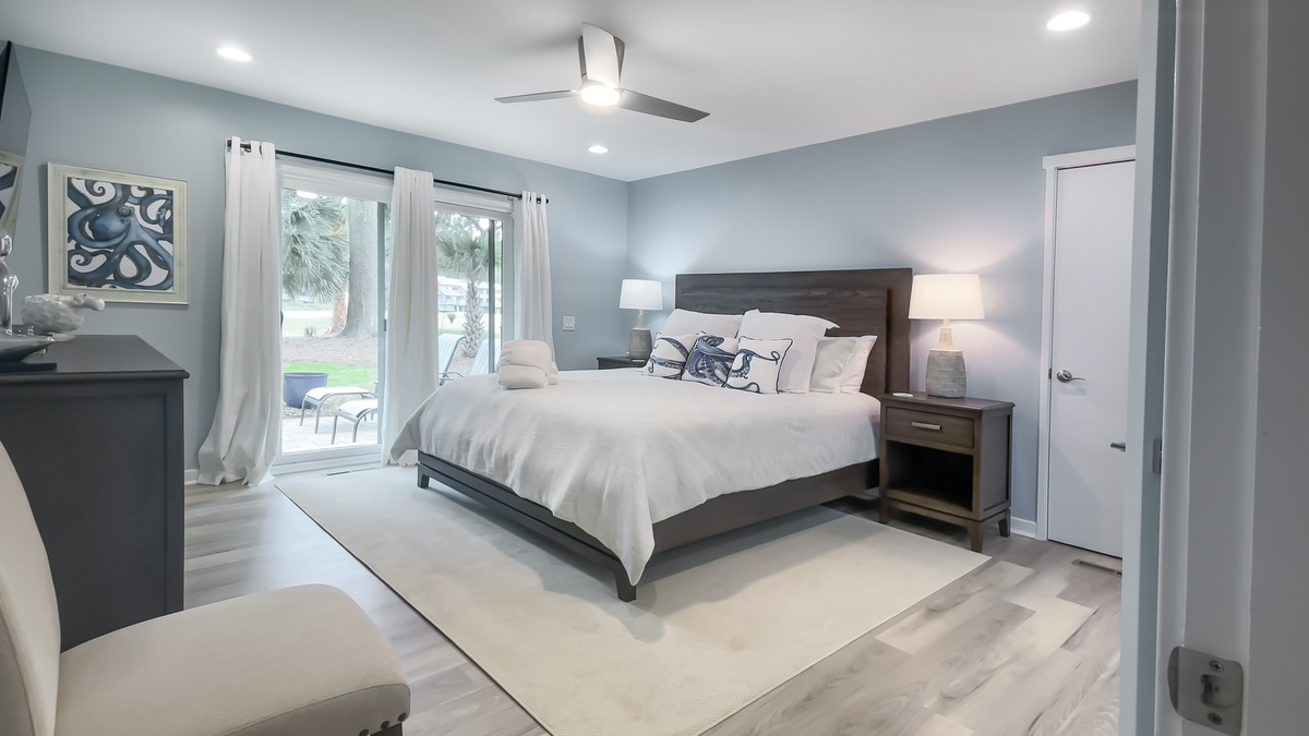 Throughout, high end touches like hardwood floors and plantation shutters provide the comforts of a home in a property in the heart of Sea Pines’ wooded tranquility.