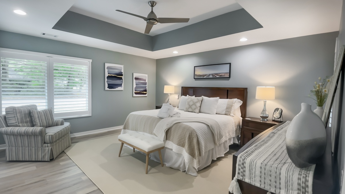 This property’s tranquility extends into three bedrooms, each with something special to recommend it.