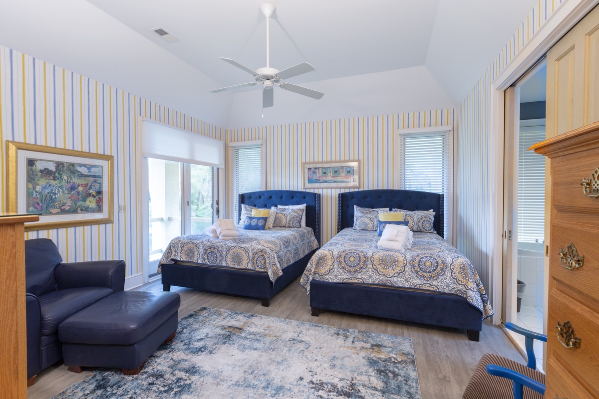 The comfort and style that informs the main living spaces finds suitable expression in the many guest rooms found throughout the property. Just as the main living spaces exult in a sense of spaciousness that accommodates the largest of parties, you’ll find exquisite privacy and relaxation among the seven guest rooms. Each boasts a generous footprint as well as private bath, alongside architectural details that dazzle like tall ceilings, with several enjoying private access to the outdoor living spaces. All told, you’ll find five separate suites with king size beds as well as a spacious dual queen bed set and one room with two twin beds perfect for younger guests.