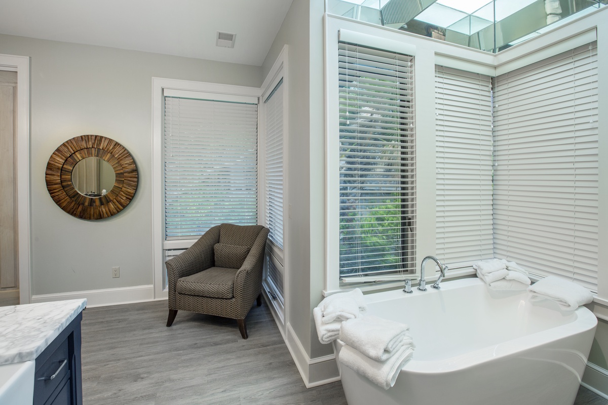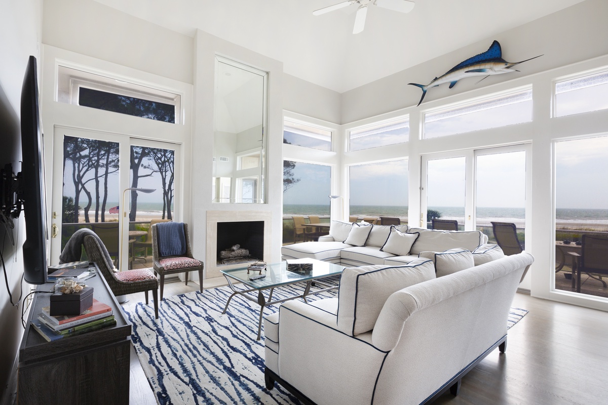 Experience the very finest in beachfront majesty as you and your party indulge in the Sea Pines lifestyle of this soaring waterfront vacation getaway. Built with an eye toward the utmost in luxury and style, you’ll find soaring skylit spaces throughout that breathe in open airiness, and the sparkling waves of the Atlantic stretching away from every view.