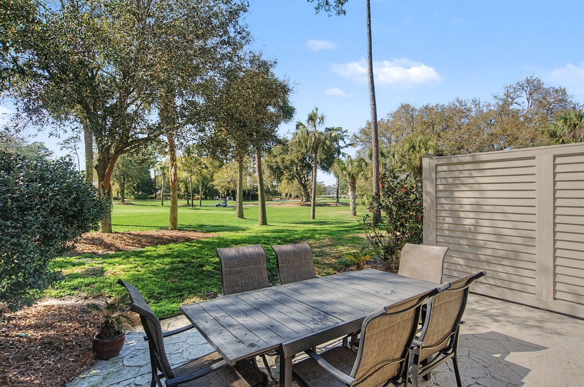 Enjoying unfettered views of Harbour Town Golf Links’ gorgeous 10th hole, this vacation getaway offers lush tranquility in the heart of Sea Pines.