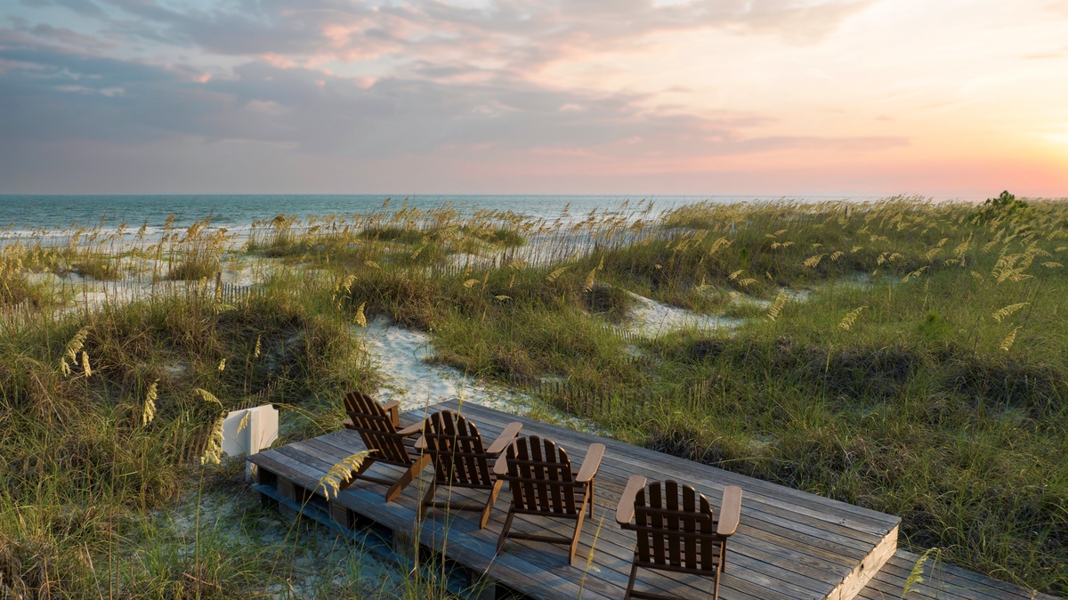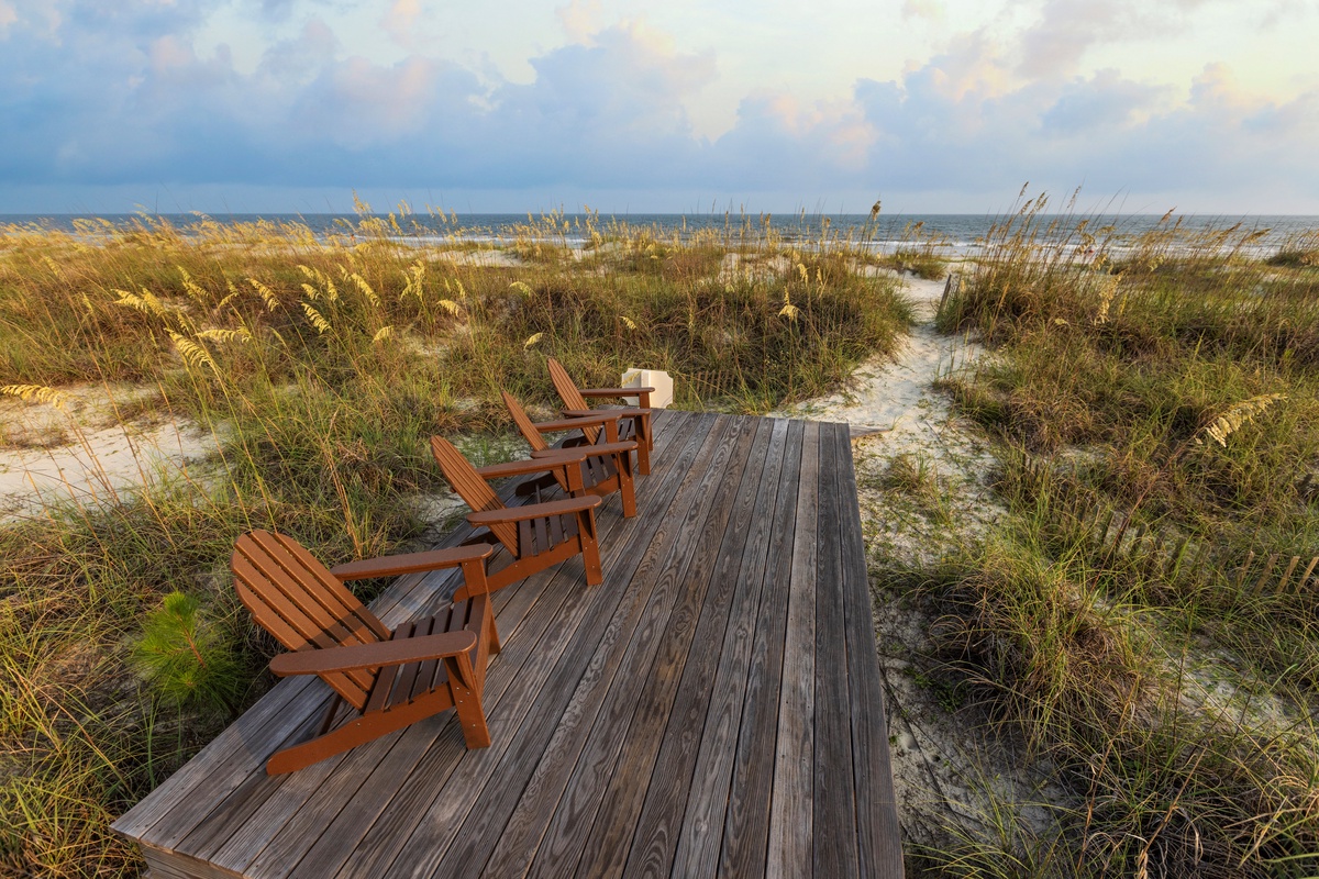 Private boardwalk to the beach with two decks to watch the sunrise and sunset