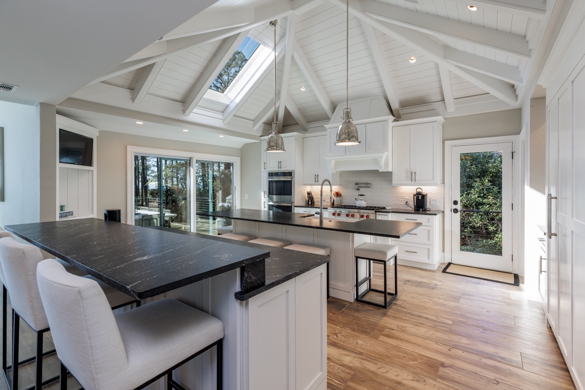 Chef’s kitchen with Wolf range and Sub-Zero refrigerator and a Sub-Zero wine refrigerator