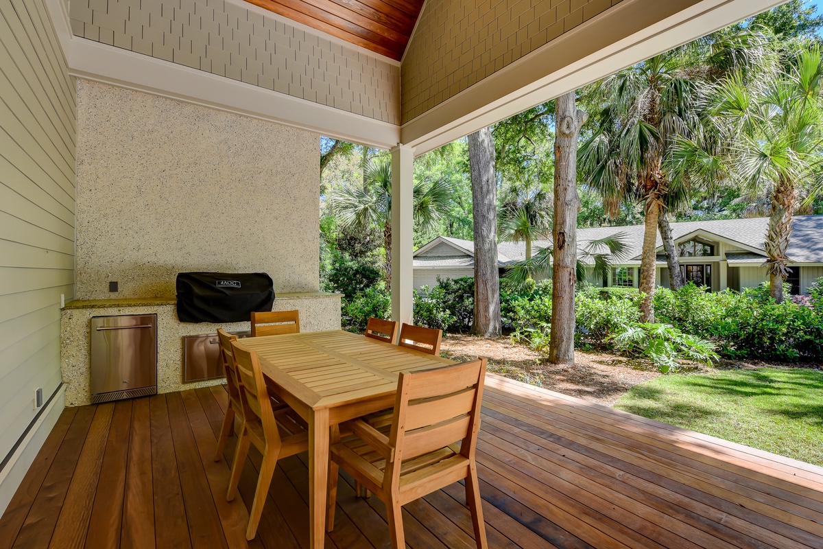 Offering plentiful spaces to come together and quieter corners to enjoy vacation tranquility, plus easy access to Sea Pines amenities amid a serene sense of privacy, this vacation getaway truly offers it all.