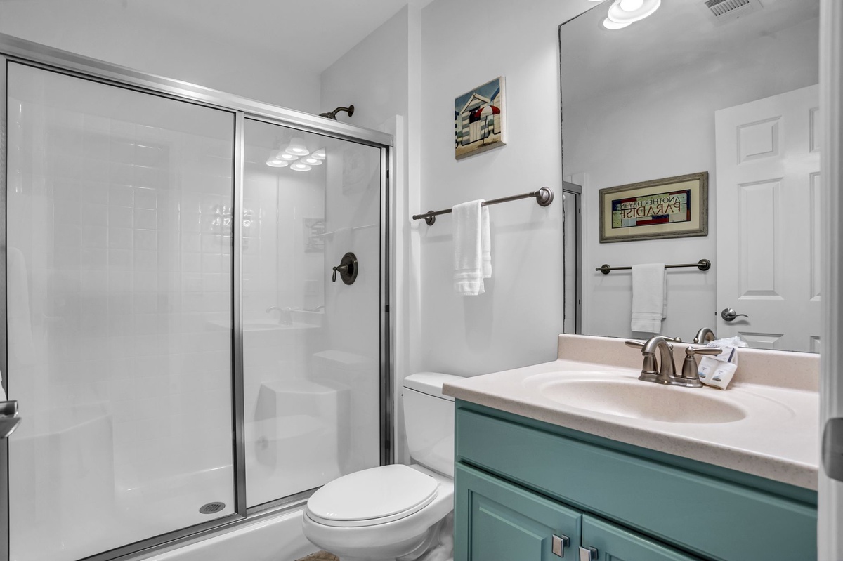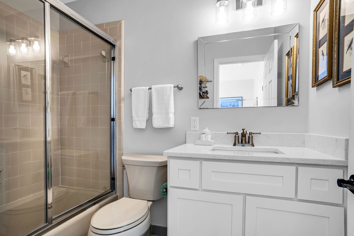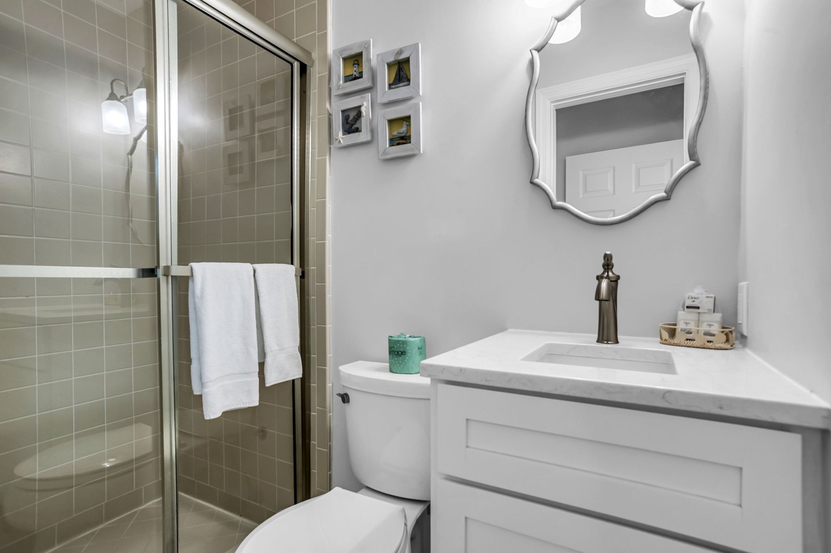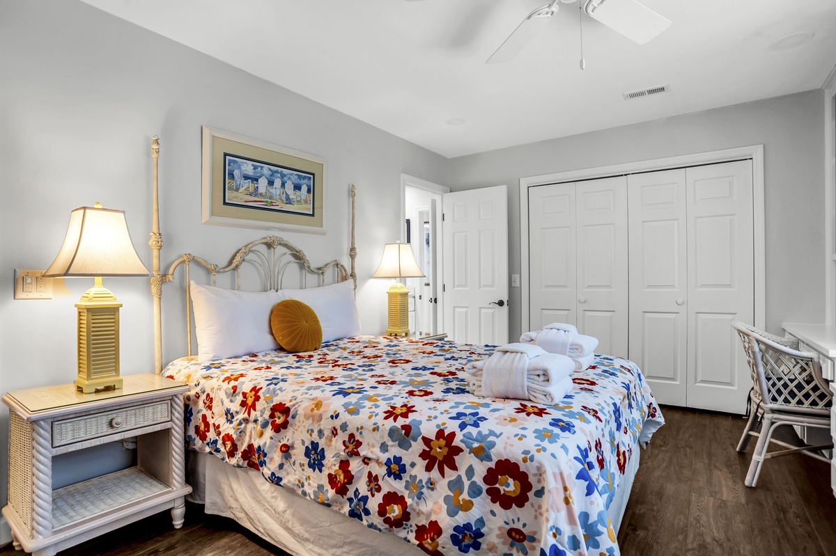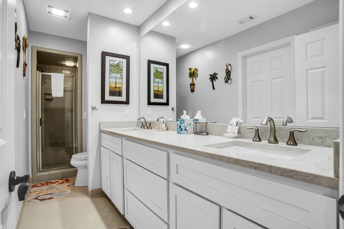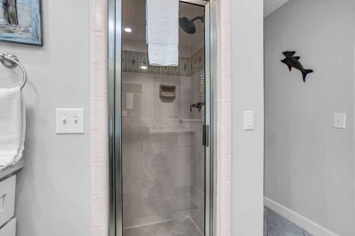The master can be found on the ground floor, a sprawling suite with a king size bed, ceiling fan, flat-screen TV and spa-like en suite bath with soaking tub, his and hers vanities and spacious walk-in shower boasting dual showerheads.