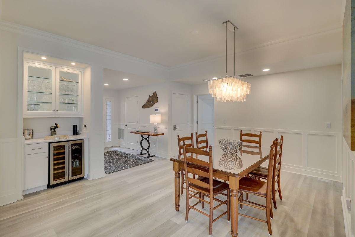 Dining options include morning coffee on the 2 terraces, casual dining on 4 bar stools in the kitchen or eating in the dining area which seats 6. All options provide views of the beach and sound.
