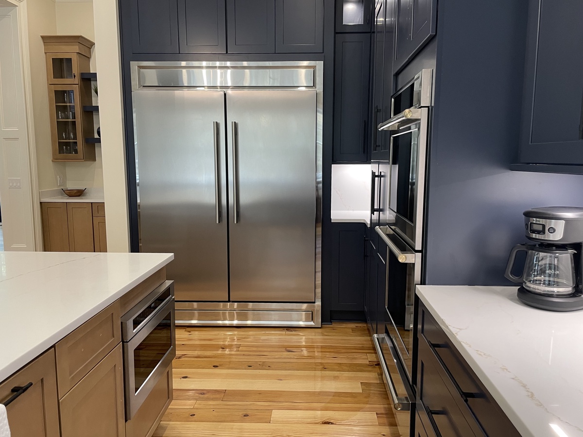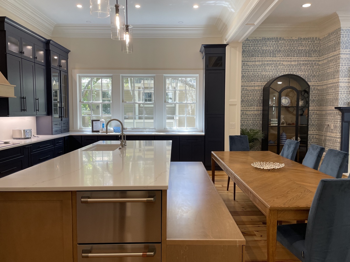 Completely renovated in 2025, this stunning kitchen now spans the full width of the first-floor open-concept space. Designed with both functionality and style in mind, it boasts an expansive island with ample prep space and built-in banquette seating—perfect for casual meals or gathering with friends. The banquette seats 5-6 people and the adjacent dining table offers additional seating for six, making it easy to host and serve guests all in one central location. High-end appliances elevate the experience, including a double-wide stainless steel commercial refrigerator, beverage drawers, wine cooler, built-in induction cooktop, double oven, two dishwashers, and a standalone icemaker. For coffee lovers, the built-in Miele espresso machine adds a luxurious touch, taking both everyday living and entertaining to the next level.