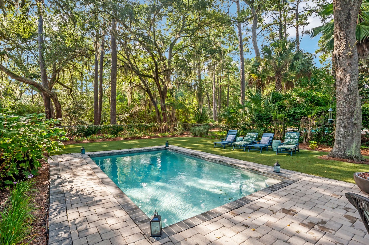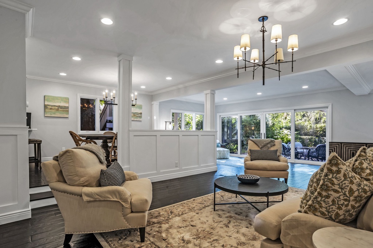 Step onto the spacious covered front porch, unwind on the upper rear deck, or enjoy a relaxing night on the screened porch off the owner’s suite. The heatable pool with a paver patio and fenced backyard creates a private oasis, complete with multiple sitting areas ideal for morning coffee or evening cocktails.