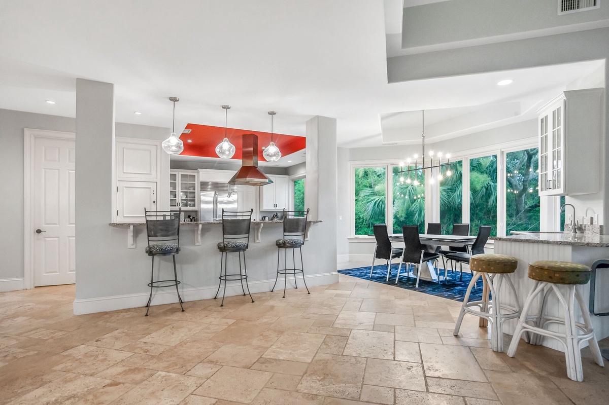 A washer and dryer in separate laundry room and two half baths, round out this one-of-a-kind home’s incredible vacation offerings.