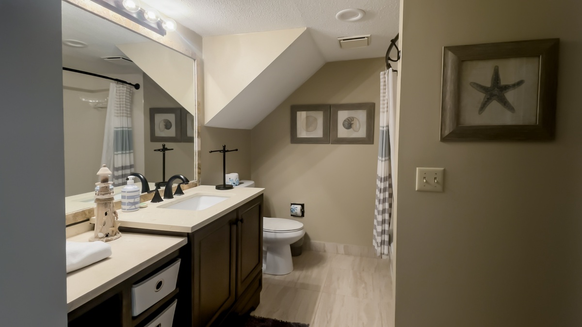 Unwind in the great room amid coastal refinement, with a soaring vaulted ceiling above you and windowed walls on two sides bathing the room in natural light. Bask in the Carolina sun on a beautifully private pebblestone patio.