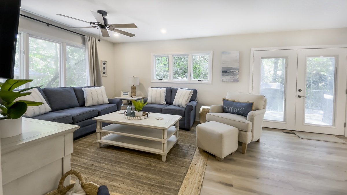 Centrally located at the heart of Sea Pines, with shopping, dining, golf and the beach just a short bike ride away, this wonderfully updated vacation hideaway offers coastal style and lush comfort.