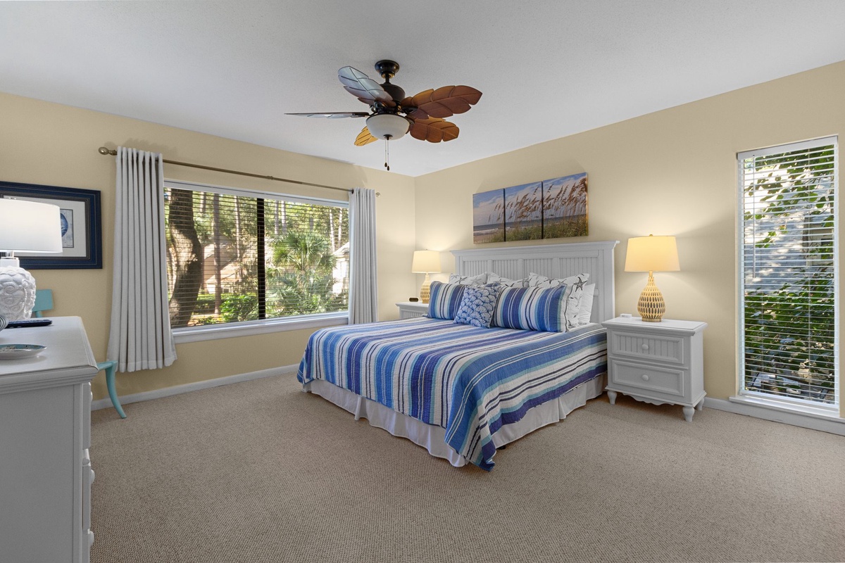 Nestled in the heart of Sea Pines, with world-class golf, beaches and entertainment just a short bike ride away, this magnificent two-story end-unit villa boasts elegance and updates that create pure vacation magic.