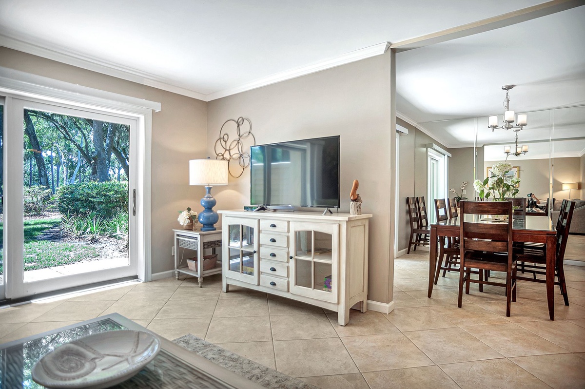 Viewing the Harbour Town Golf Links, this tri-level townhome has everything you could want in a vacation home including a wonderful centralized location in the heart of Sea Pines.