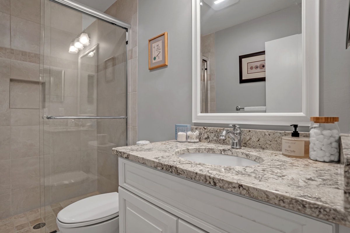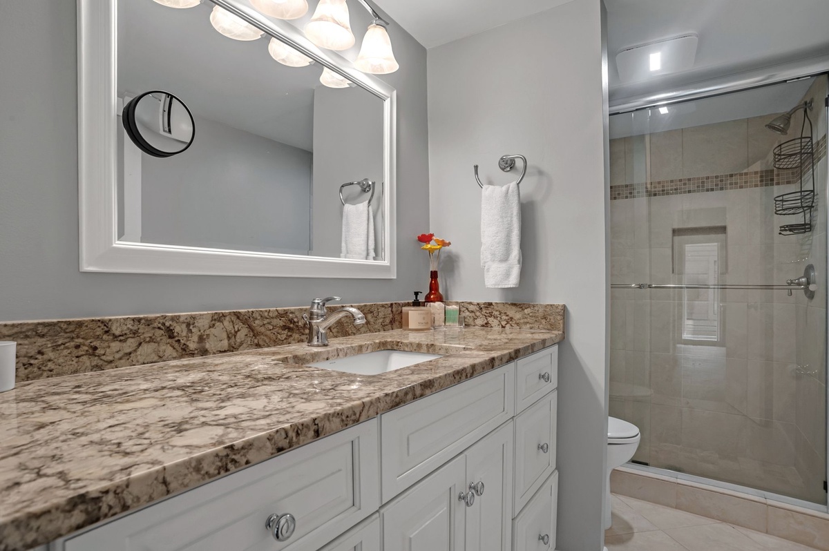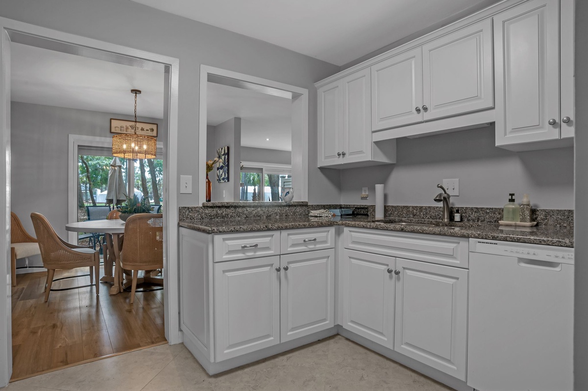 Beautifully opened to the dining room, the expansive kitchen offers a full suite of appliances and ample counter space for working your culinary magic. A nearby washer and dryer and convenient powder room round out the property’s many homey amenities.