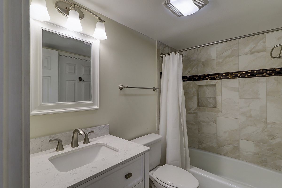 Elegantly updated to reflect modern Southern sensibilities, the two guest rooms are a master class in stylish comfort. The first sees a pair of double beds paired in a full suite with private bath boasting beautifully renovated tub and shower. The second suite offers a king-size bed set before a flat-screen TV, as well as its own updated en suite bath with tub, shower and dual-basin vanity.