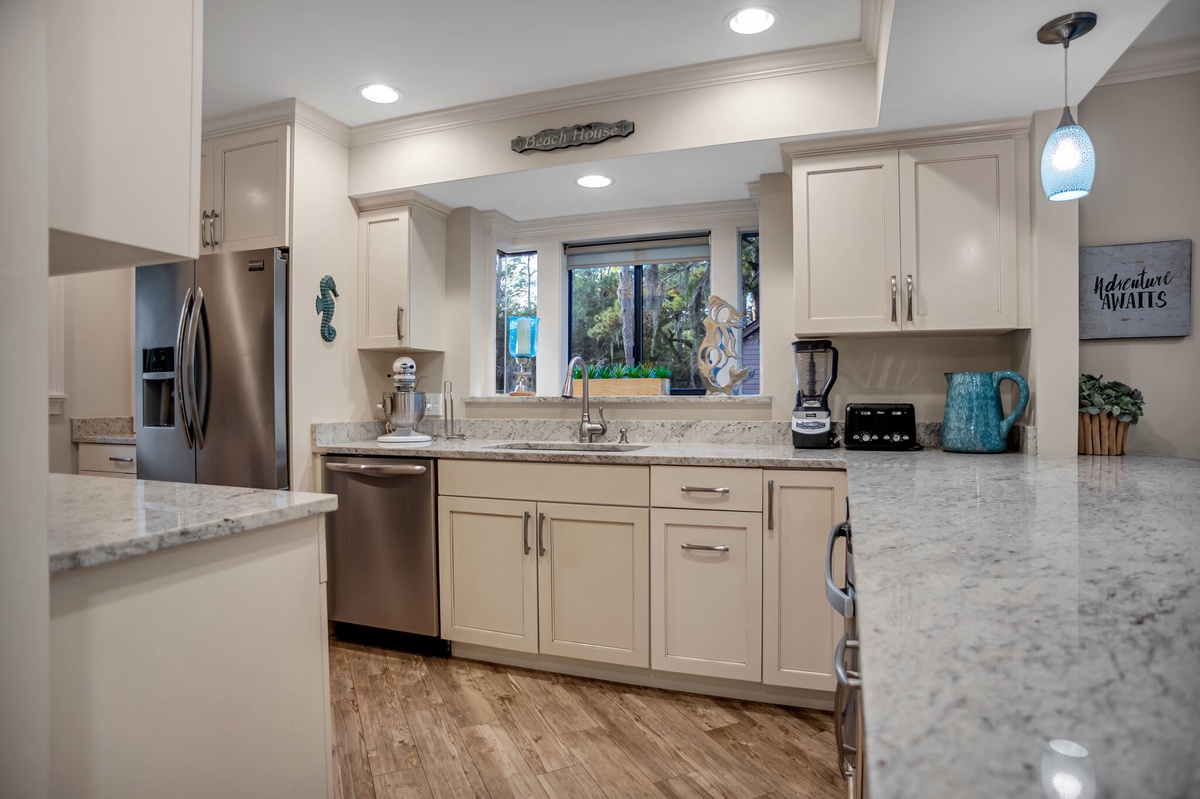 Reveling in its scenery and enjoying a location just a short bike ride from some of Sea Pines’ most famed attractions, your dream vacation awaits in this wonderfully updated villa.