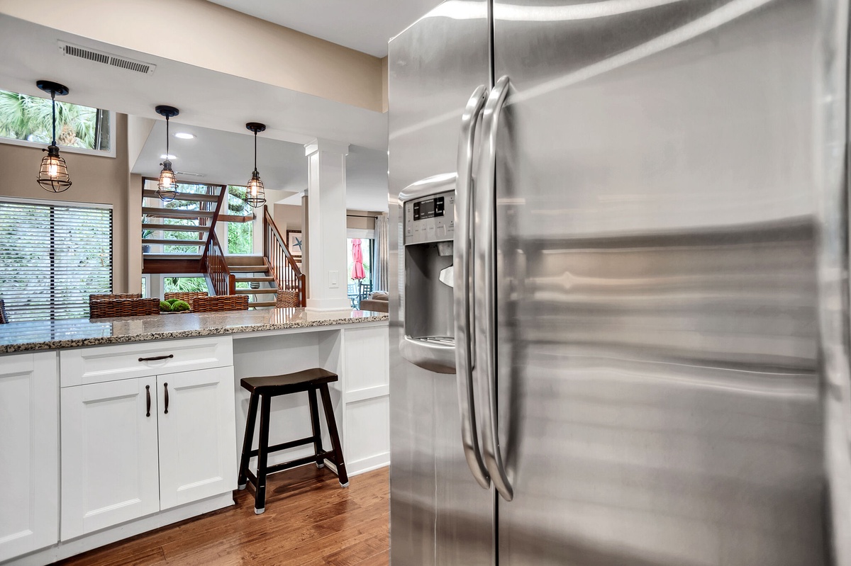 This property dazzles inside, and outside you’re just a short bike ride from the beach and from the Shops at Sea Pines Center.