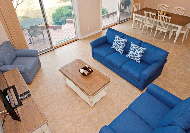Through its gated courtyard with arched entrance, this open and airy villa greets you with immediate marsh views of Stoney Creek. The living area invites light with vaulted ceilings and a two-level wall of windows; plus the room offers a TV, DVD player, ceiling fan and sleeper sofa.