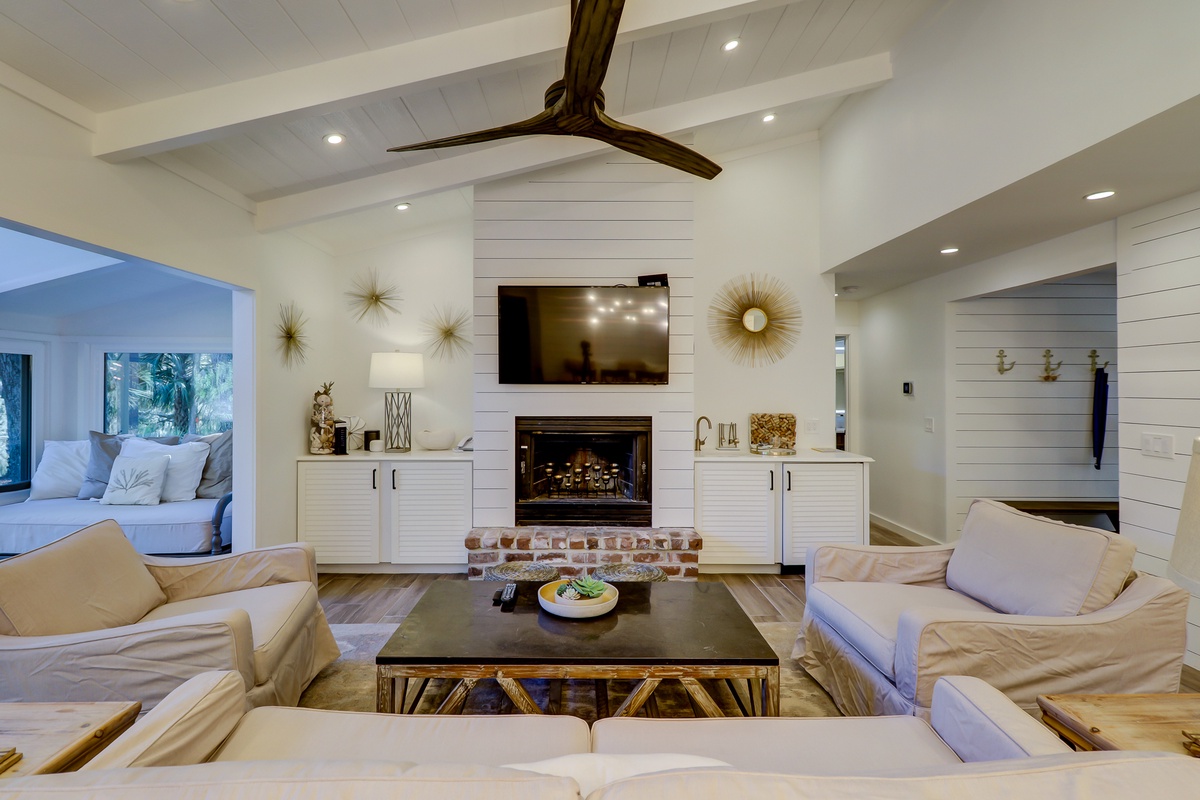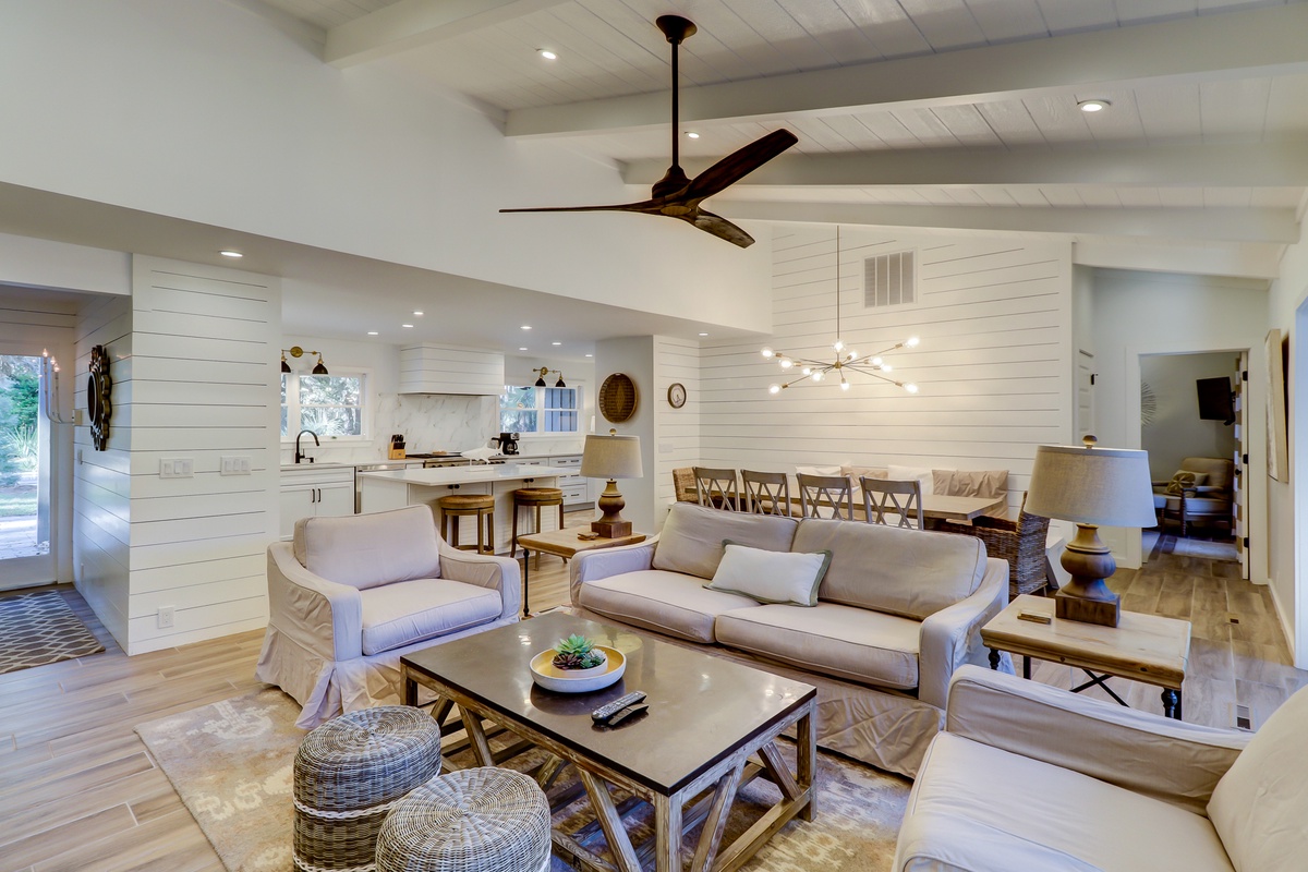 Stunning renovations have imbued this open and airy vacation getaway with all the charm of a beachfront cottage and all the sophistication of a luxury home.
