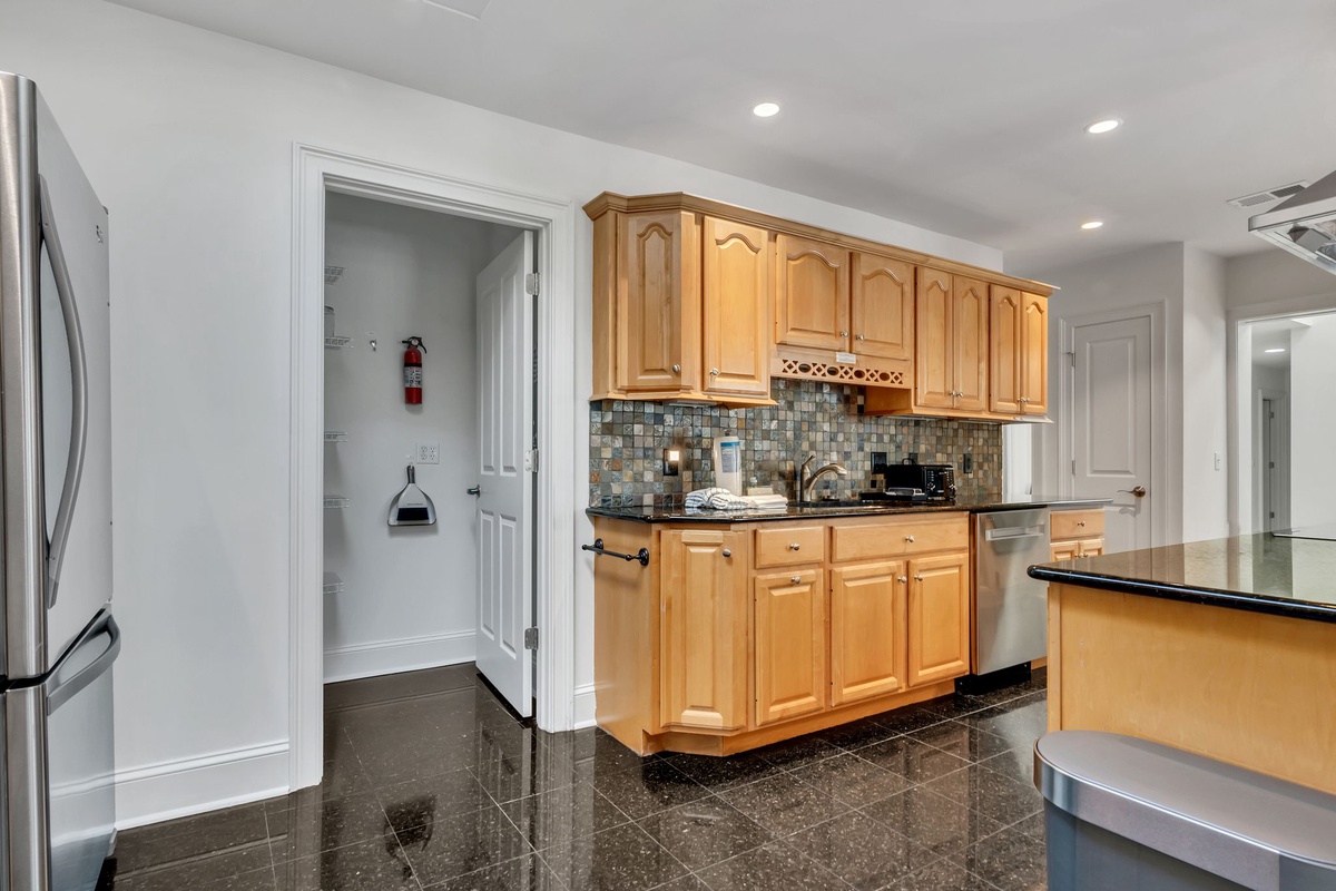 This beautiful ranch-style home (no stairs!) features an impressive great room, which doubles as a living room, and is the focal point of the common areas with tall ceilings, high windows with natural light and comfortable furnishings. The great room features 2 sofas and 2 additional upholstered chairs, along with a game table with 4 chairs, full-size foosball table and stocked bookshelves. The nearby dining area seats eight guests, and the adjacent family room features a sofa and two chairs, countertop wine cooler, mounted TV and 4 bar chairs at the kitchen counter. The kitchen features granite countertops, electric range, oven, microwave and a convenient walk-in pantry with extra shelving. The home also features a powder room to serve the common areas and a laundry room with full size washer and dryer that leads to the two car garage.