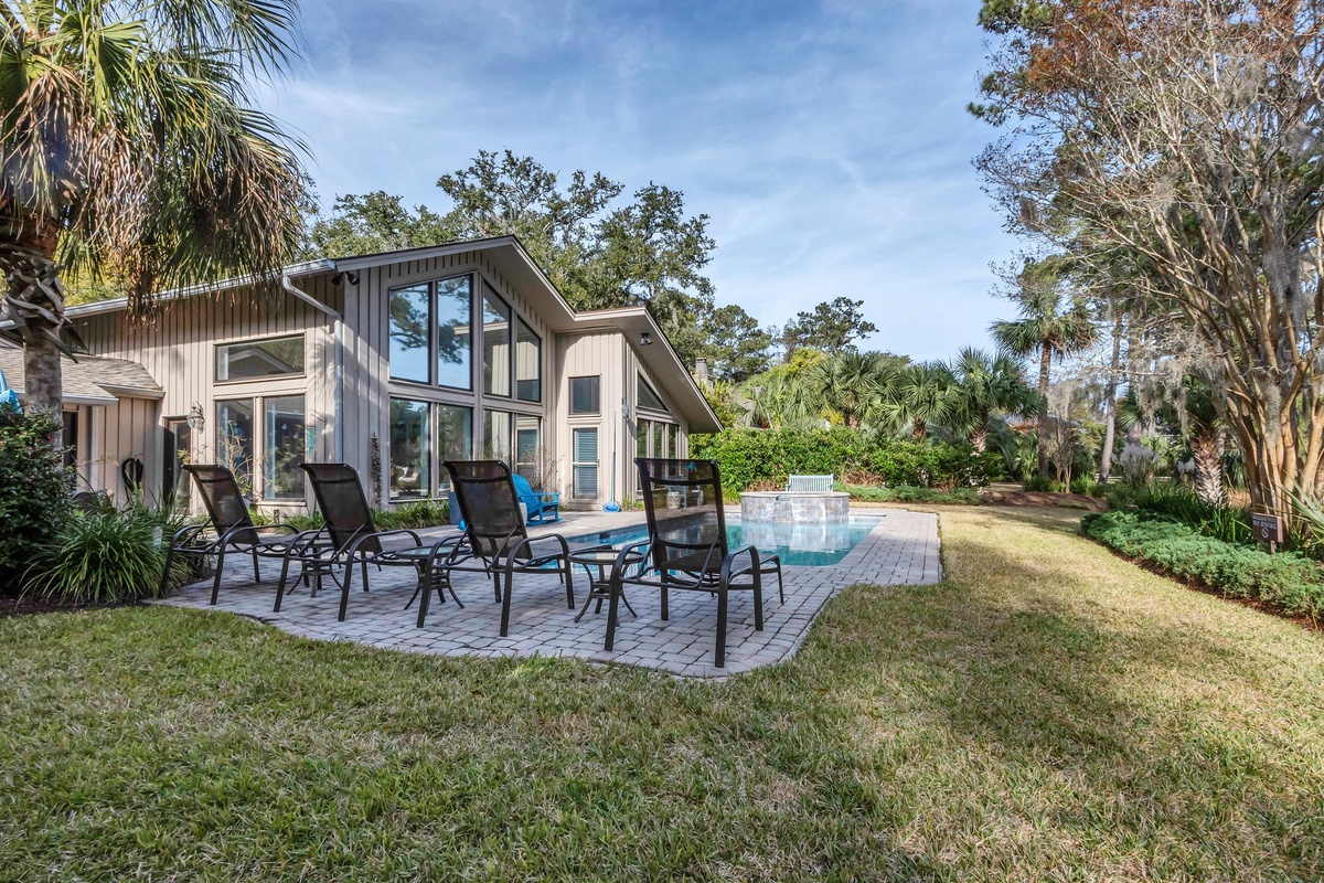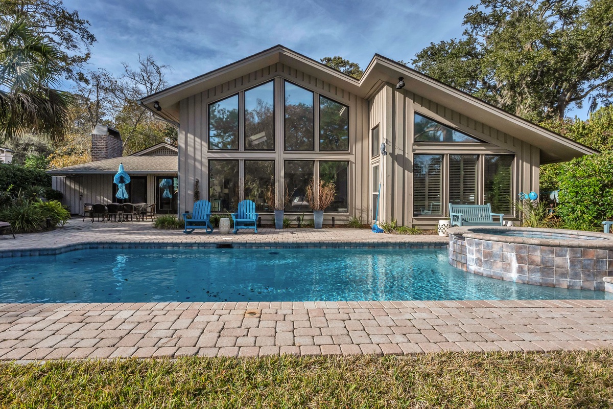 Beautifully decorated beach home in a picturesque setting with landscaped pool area surrounded by nature preserve and golf course view in the distance. The home is set in a peaceful, tranquil setting and the central location lets you enjoy all that Sea Pines has to offer from miles of bike trails to the beach to Harbour Town and South Beach Marina. With 3 bedrooms and 3.5 baths, 335 Greenwood Drive features interior updates throughout and plenty of room to relax as it accommodates up to 8 guests.