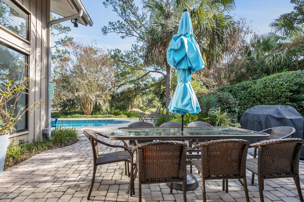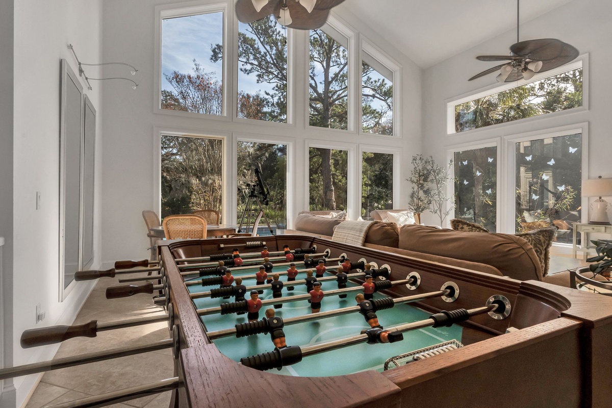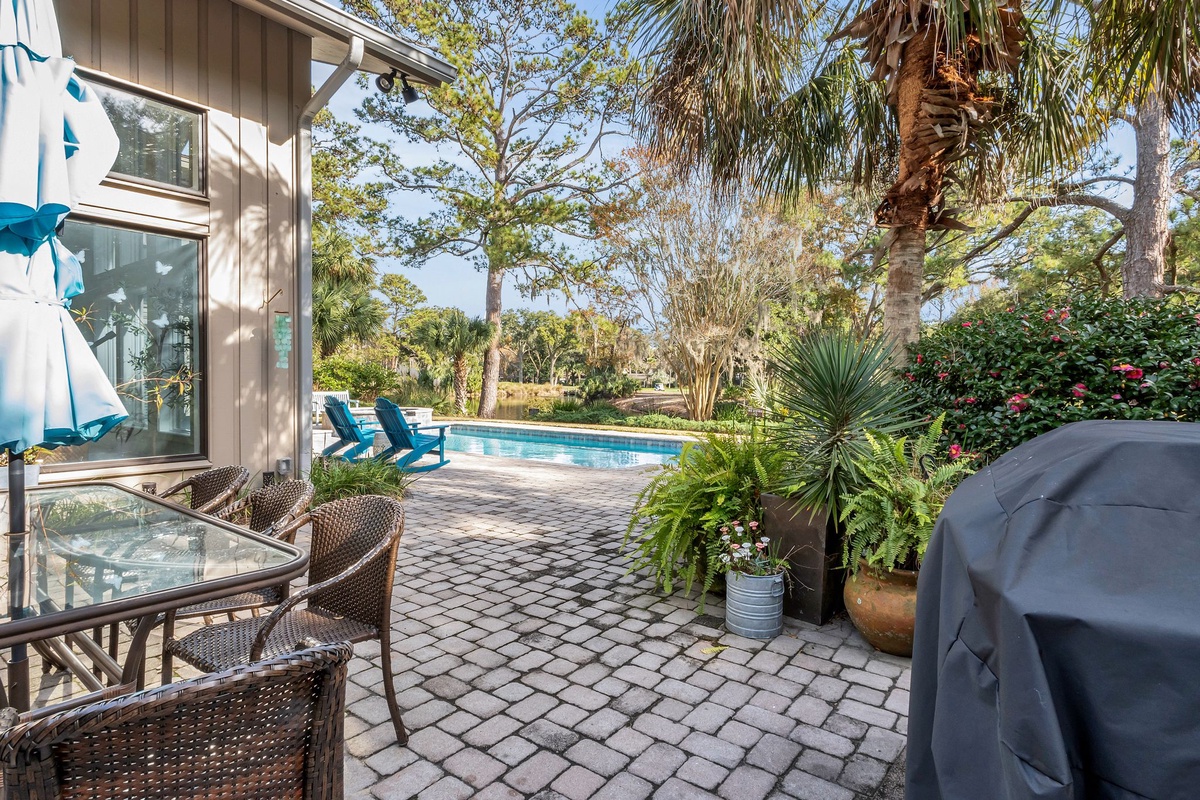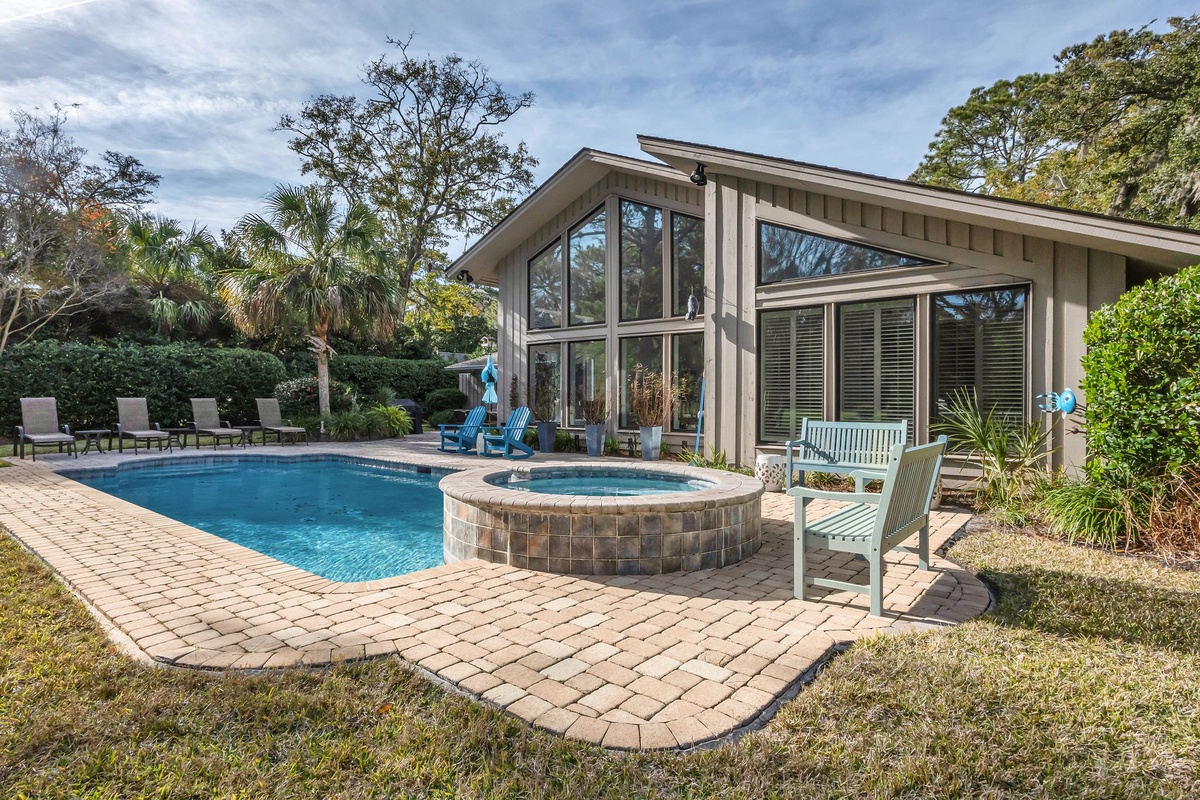 There is no shortage of amenities at 335 Greenwood Drive to make your vacation the most relaxing it can be! The home offers cable TV channels on each of the 4 TVs. The foosball table and game table provide hours of entertainment, and there is plenty of driveway parking for 4 vehicles, as well as a 2-car garage for your vehicles, bikes, beach equipment and golf clubs. The private swimming pool and spa are the highlight of the outdoor area and the pool can be heated for an additional cost. The pool deck includes a gas grill, outdoor table, chairs and lounge chairs, all set on an updated paver deck. The beach is a short drive or bike ride from this home (~1 mile away) and includes the most beautiful stretch of Hilton Head Island beach along the Atlantic Ocean.