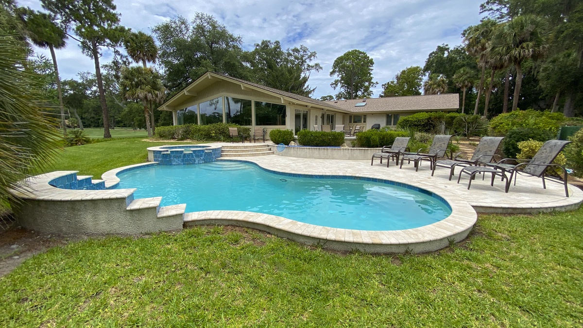 Boasting 270-degree golf views amidst blissful privacy, this stunningly tranquil and exquisitely updated vacation home is ideal for those seeking a true island getaway.