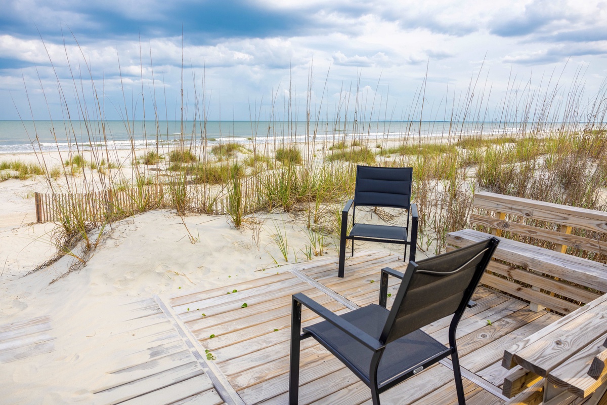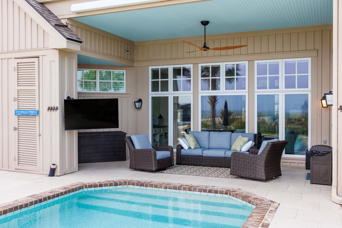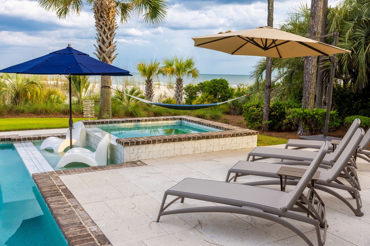 Step outside to experience beachside fun and relaxation in your private oasis. To one side of the kitchen, an elevated deck allows for outdoor grilling with a view. Follow the pathway of brick-and-tabby pavers and you’re in a private beach resort all to yourself.