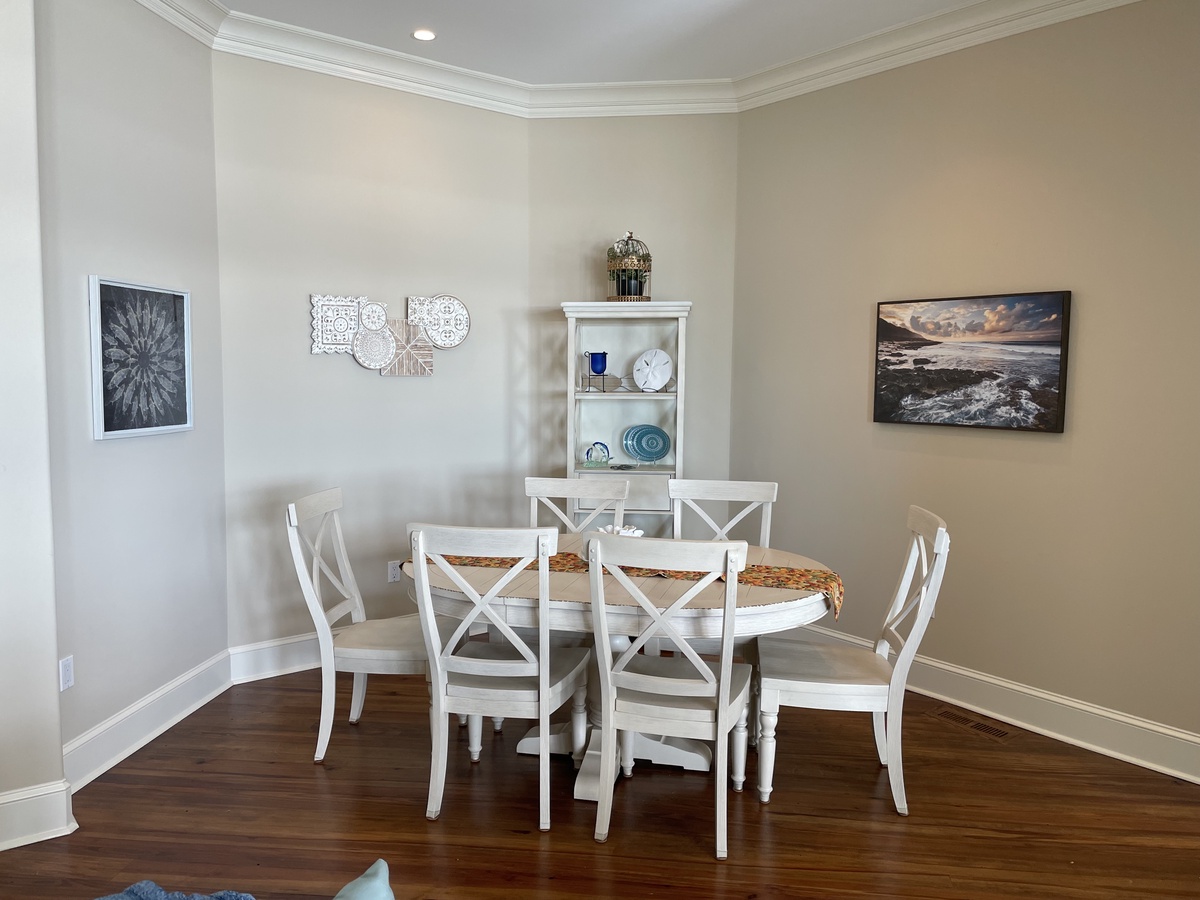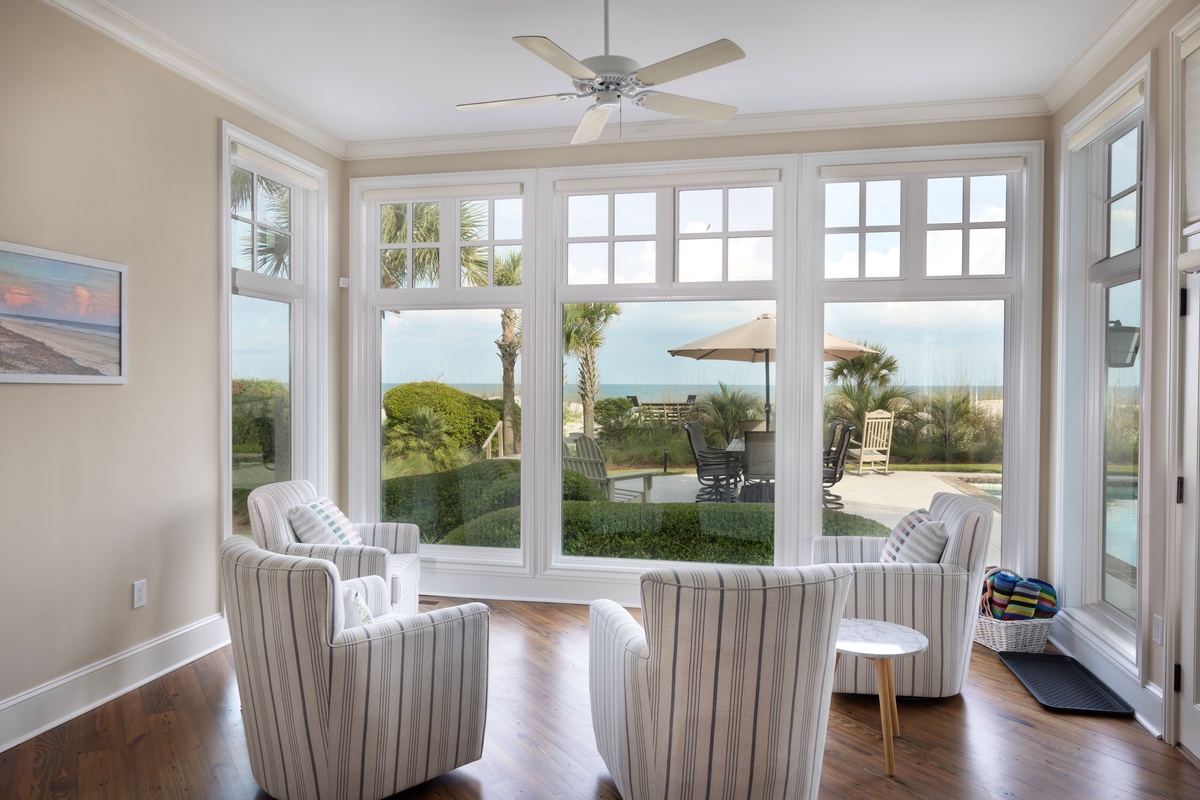 Throughout its grand spaces you’ll find that architectural brilliance allows you to bask in views across the dunes from nearly everywhere. The stunning great room, with a decorative fireplace and formal dining for six, frames ocean views with tall ceilings and classic hardwood floors.