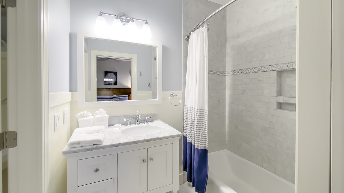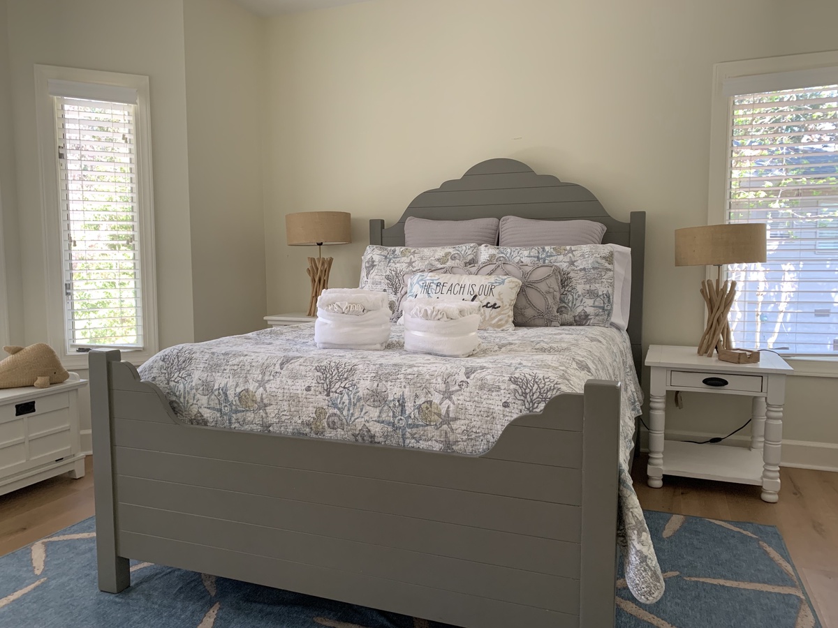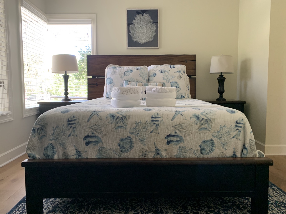 Guest rooms each offer their own take on comfort and style, starting with the carriage house room, a spacious retreat from the main living area. Here beneath soaring ceilings you’ll find a king bed as well as a pair of twin sleepers in a space with its own flat-screen TV and en suite with walk-in shower. A private get-away for a couple, or a perfect room for a family of four who want to keep young children close by. On the ground floor, two further guest rooms each indulge with a queen size-bed, en suite baths, flat-screen TVs and bay windows that gaze out on the lush front gardens.