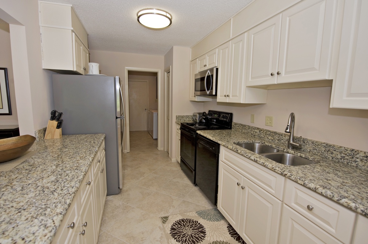 Upon entering you are greeted with walls of windows that can be enjoyed from the living room, kitchen, dining area and 1st floor master bedroom. The sunken living room features a sleeper sofa, comfortable club chairs and a large flat screen TV above the decorative fireplace. The sliding glass doors lead to a paver patio complete with dining table & chairs and ample lounge chairs. The dining area seats six and has sliding glass doors to a separate deck. The kitchen boasts granite countertops, stainless steel appliances and great outdoor views. The laundry room is adjacent to the kitchen.