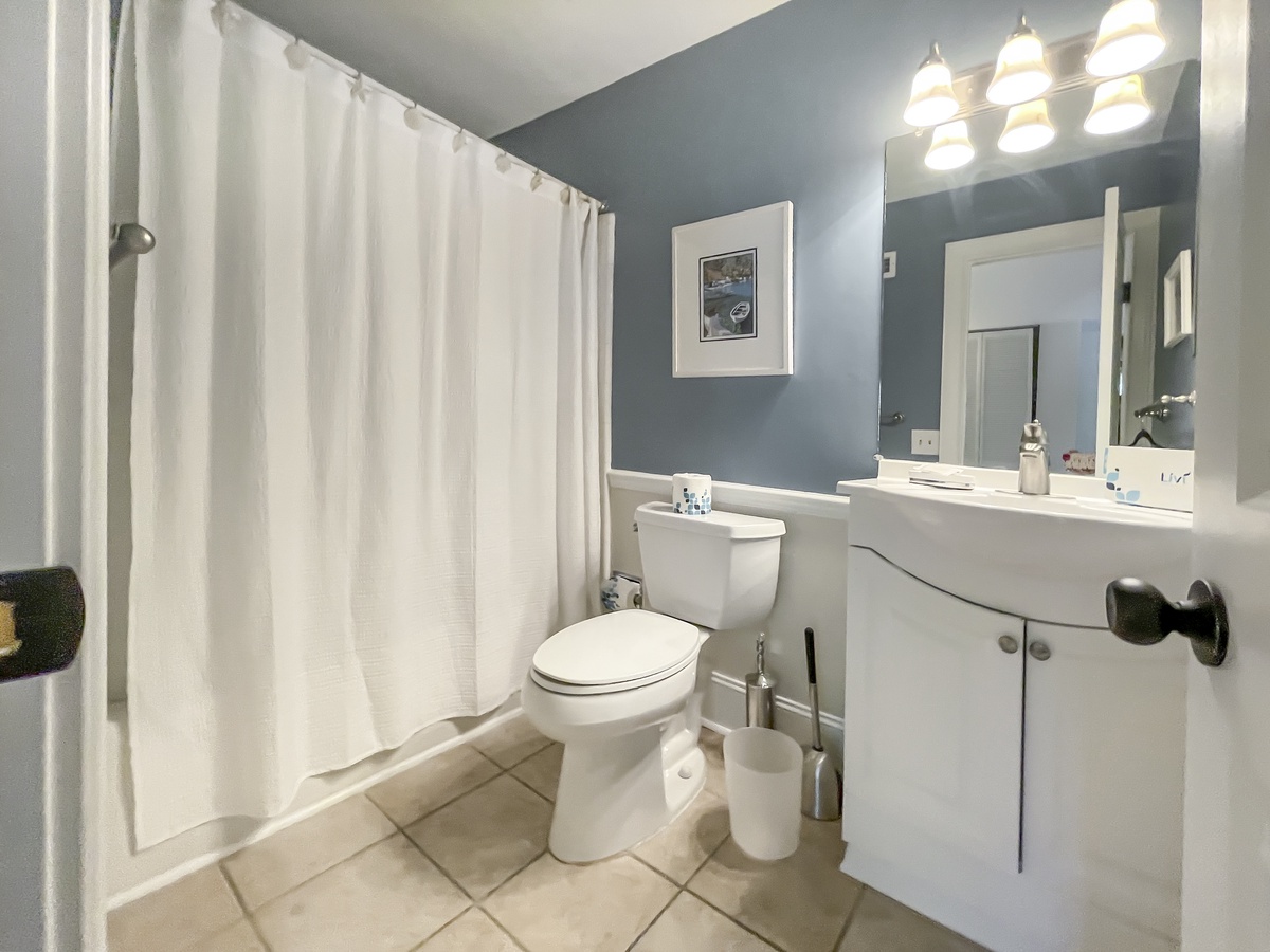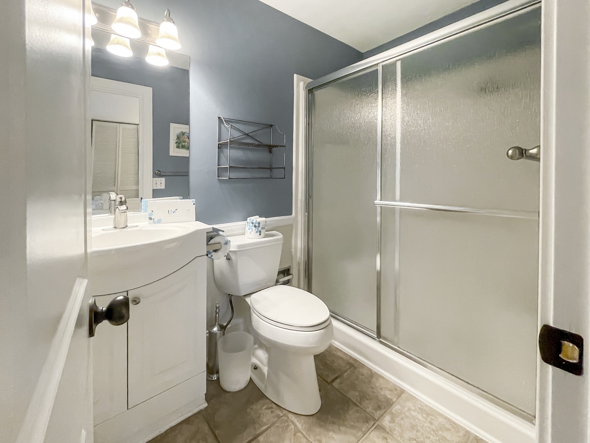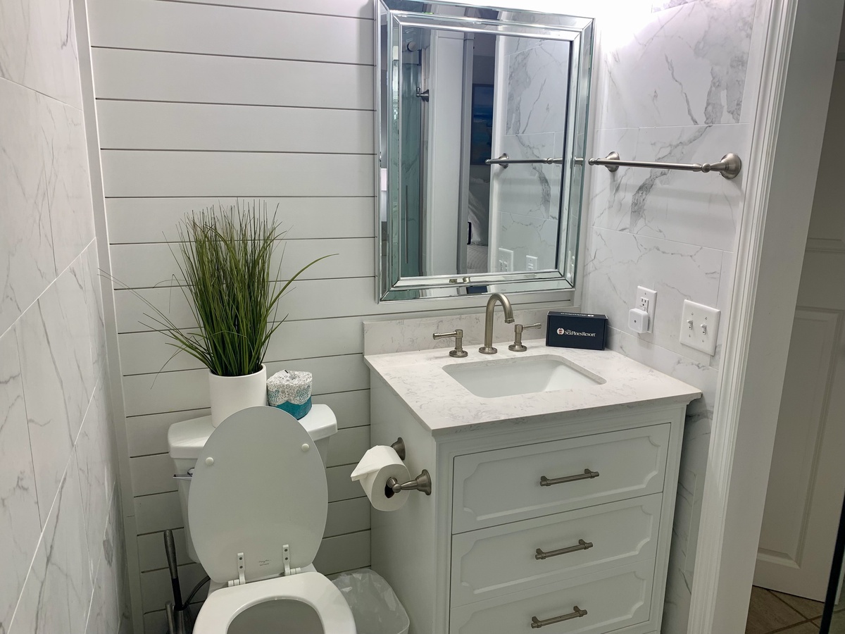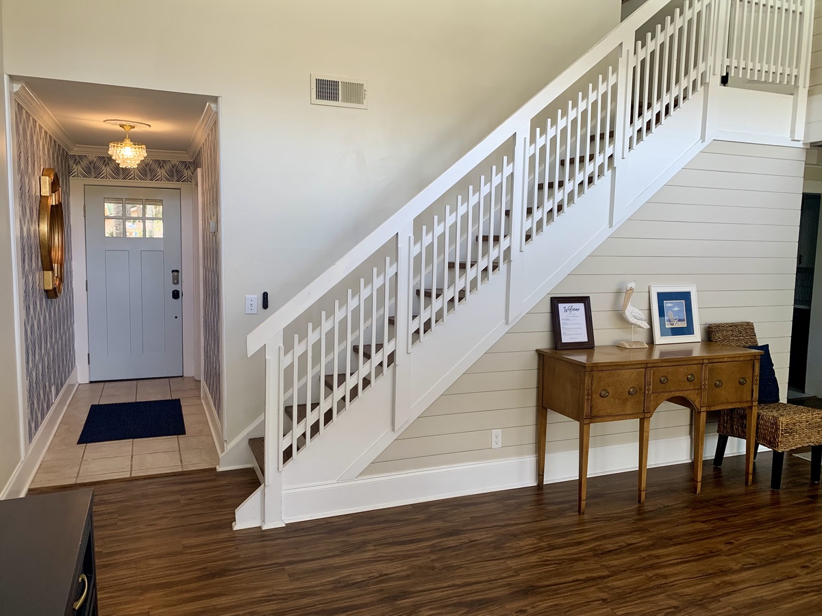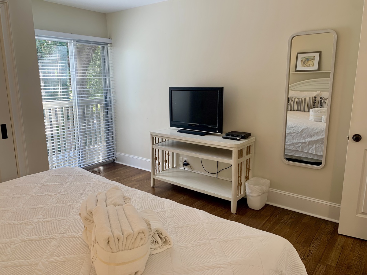 Set up a set of stairs with a custom railing, you’ll find a pair of lushly comfortable guest rooms as well as a generously spaced office for those taking a working vacation. Both upstairs guest rooms enjoy luxurious amenities like king-size bed, flat-screen TV, sliders which open wide to let the sea breezes in, and en suite baths.
