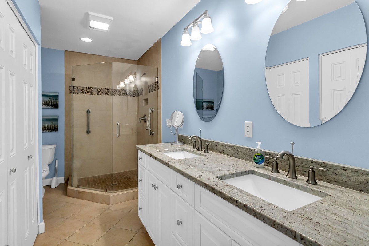The owners’ suite exults in luxury resort amenities, with a king-size bed, flat-screen TV, ceiling fan and private balcony that lets you soak in golf views from among the treetops. The en suite bath offers a spacious spa-like experience with dual-basin vanities and marvelously spacious walk-in shower.