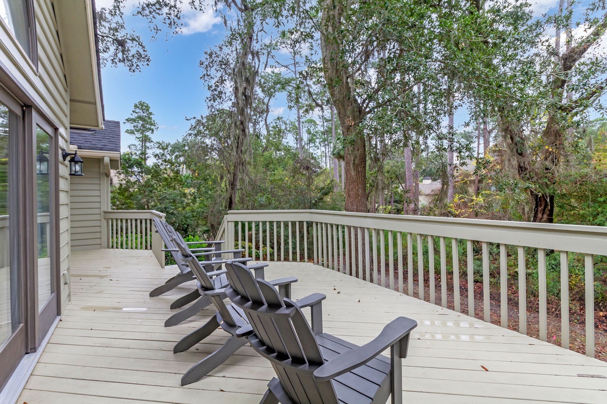 Set amid lush wooded surroundings, and conveniently located near the Greenwood gate into Sea Pines, this private vacation home gives you a getaway you’ll never forget.