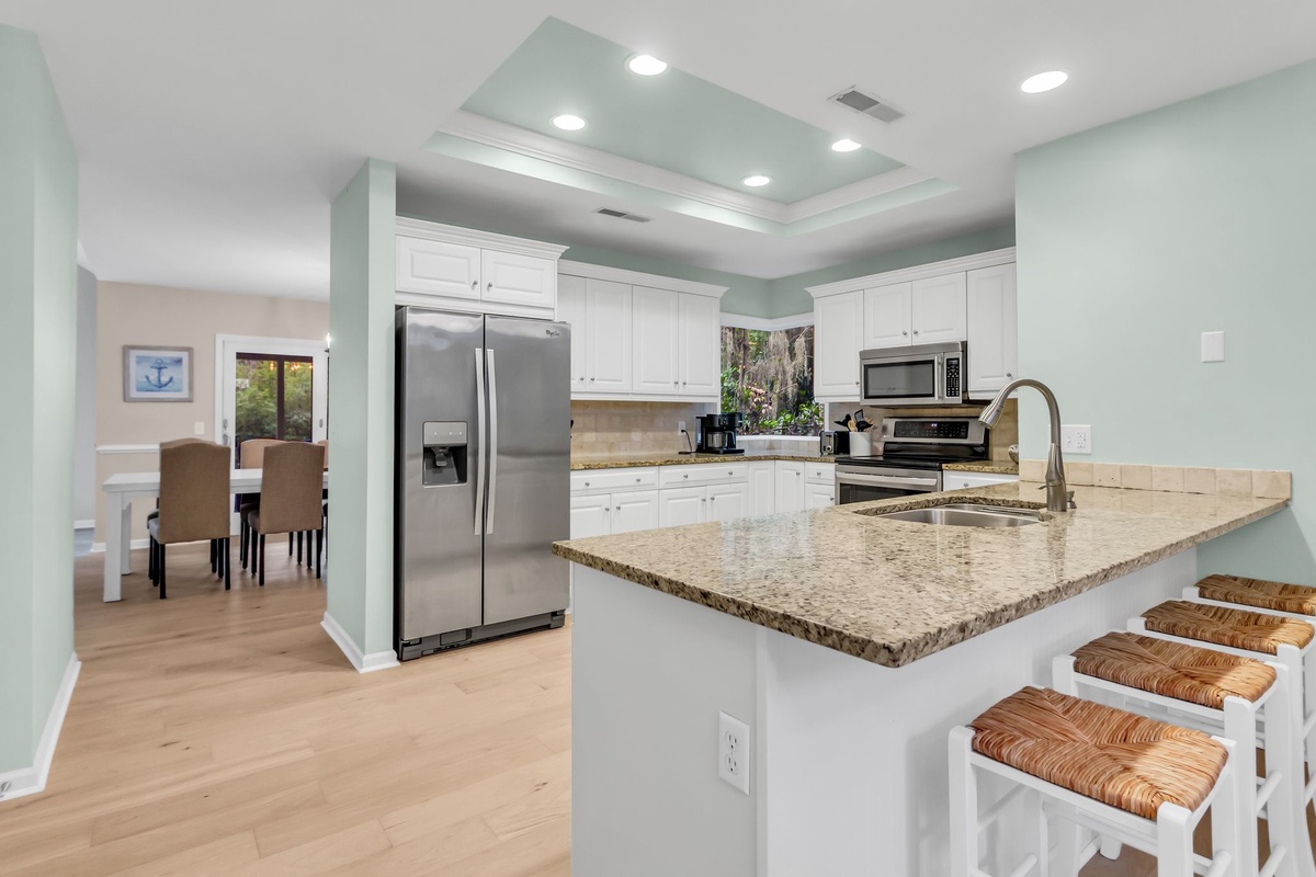 Beautifully updated with upscale finishes and dramatic design flourishes to evoke modern Lowcountry luxury, 5 Bateau Road is a private three-bedroom home that puts you in the very heart of everything that Sea Pines has to offer.