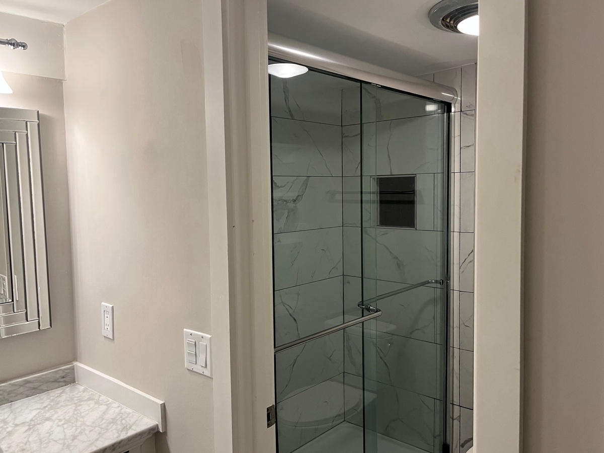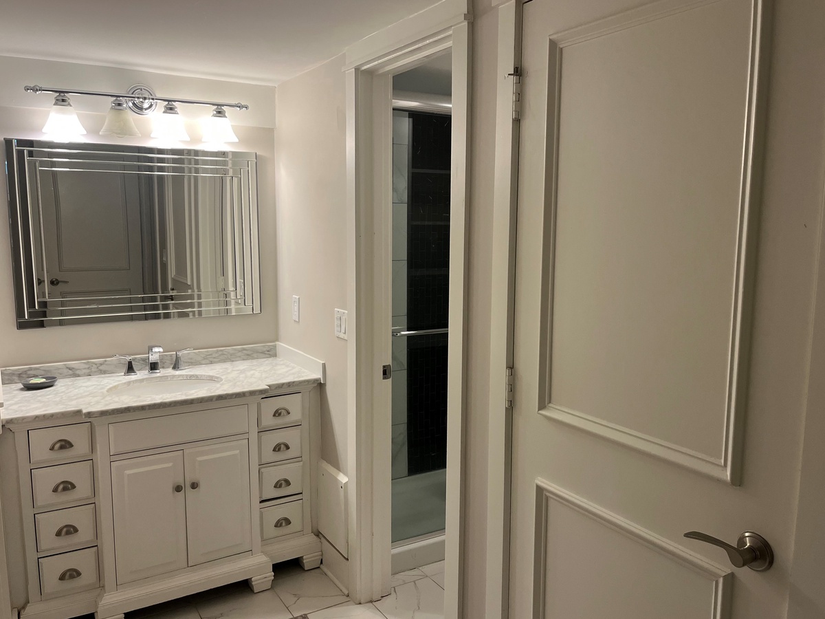 Two bedrooms set off from the entryway take the modern styling of the main living space and give it a decidedly coastal twist. Plantation shutters and a subtle lilac color scheme infuse the master bedroom with a calming sense of serenity, while a private foyer leading to the en suite with marble single vanity and full tub create an oasis of relaxation.