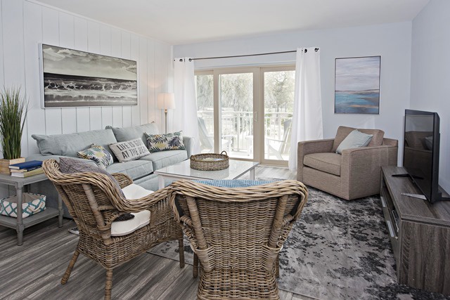 This modern two-bedroom villa has stunning golf views and easy access to many of Sea Pines best features.