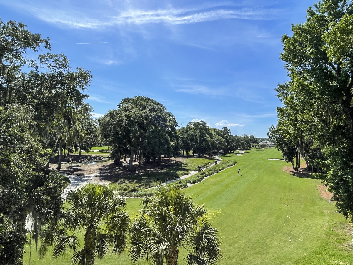 Located on the fourth floor, accessible by elevator, this fabulous two bedroom villa will endow both comfort and relaxation to your vacation! The view – seen from almost every room -- overlooks the tee box of the Atlantic Dunes all the way down the sweep of the fairway. You'll be entranced by the lush Lowcountry vista from this villa.