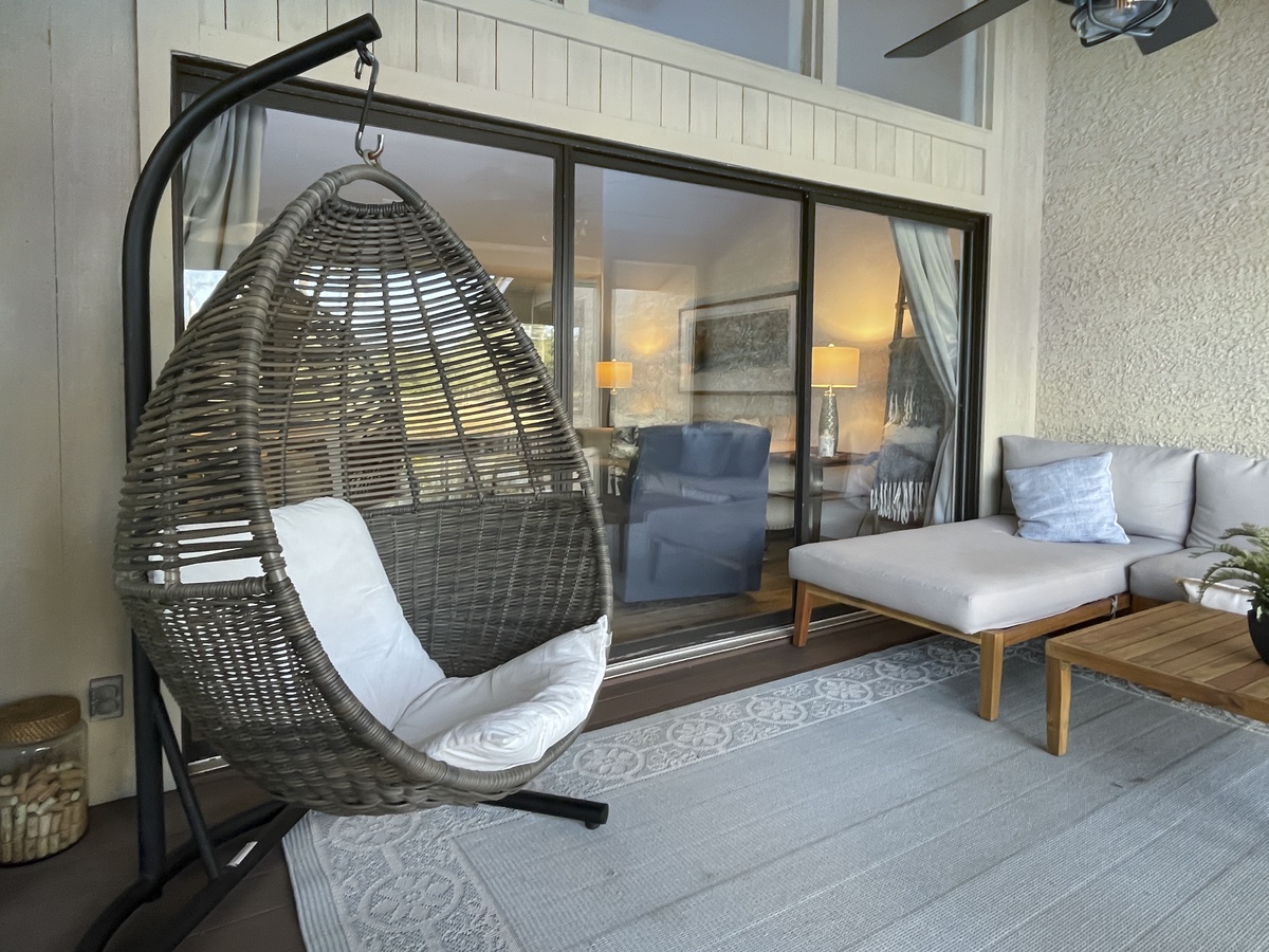 Step through these sliders, and you’re gazing out across a peaceful landscape of spartina grass and lagoon serenity toward the crisply manicured golf scenery beyond. While enjoying this view, you can unwind in the screened-in comfort of a classic Lowcountry lanai.
