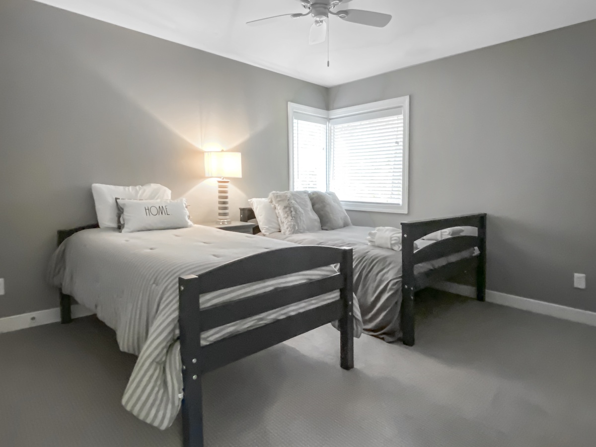 Anchoring this gorgeous space is the state-of-the-art kitchen. Offering a full suite of luxury appliances including six-burner chef’s range with griddle, the kitchen accommodates the whole group with its sprawling granite center island’s bar seating for two. Prepare a meal together and then enjoy it at the eye-catching farmhouse style dining table. The convenient wet bar with wine cooler ensures the conversation will flow.