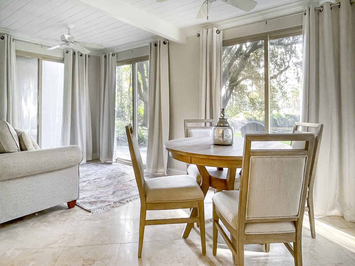 Sublimely peaceful, yet located just a short bike ride from some of Sea Pines’ most exciting attraction, this charming villa offers the best of both worlds.
