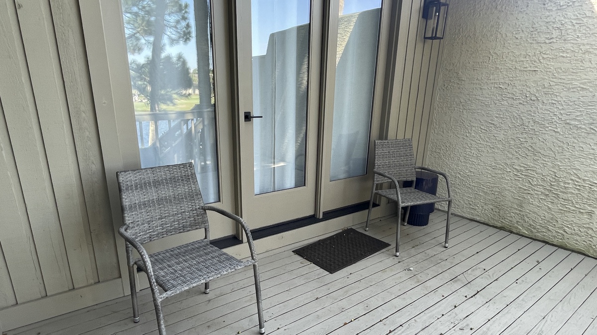 The main villa offers its own kind of outdoor amazement thanks to jaw-dropping views across multiple holes at Plantation Golf Club. Soak in the scenery through a wall of windows, or step outside to a wide sundeck letting you take it all in. From the inside, that view is framed by a beautifully spacious great room whose vaulted ceiling soars above a decorative fireplace, sofa, loveseat and flat-screen TV.