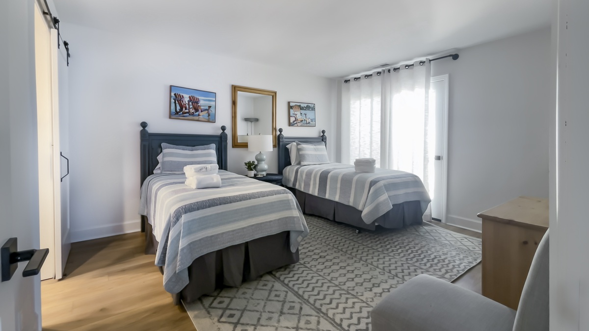 The remaining guest rooms enjoy an exquisite sense of privacy, sharing an outbuilding off the central courtyard. On one, a king-size bed anchors a suite with flat-screen TV and private bath with tub and shower. In the other, a pair of twin beds provide comfort amid a space with flat-screen TV and en suite bath with walk-in shower. Each enjoys its own private access to the courtyard.