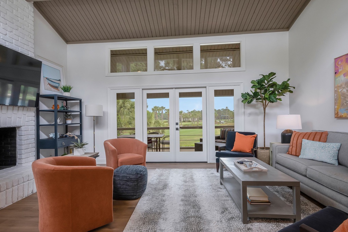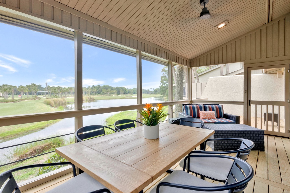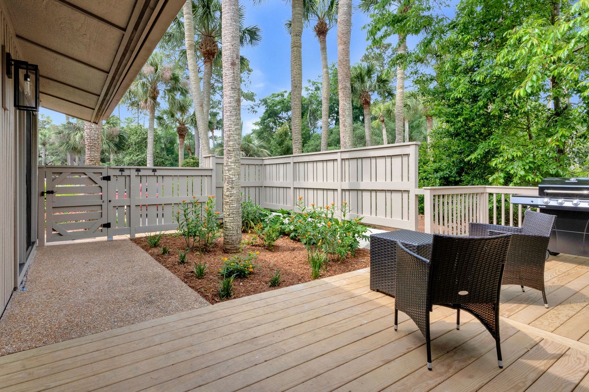 Ideally located between Sea Pines Beach Club and Plantation Golf Club, this pet-friendly end unit benefits from recent renovations and its blissful proximity to a gently trickling stream.